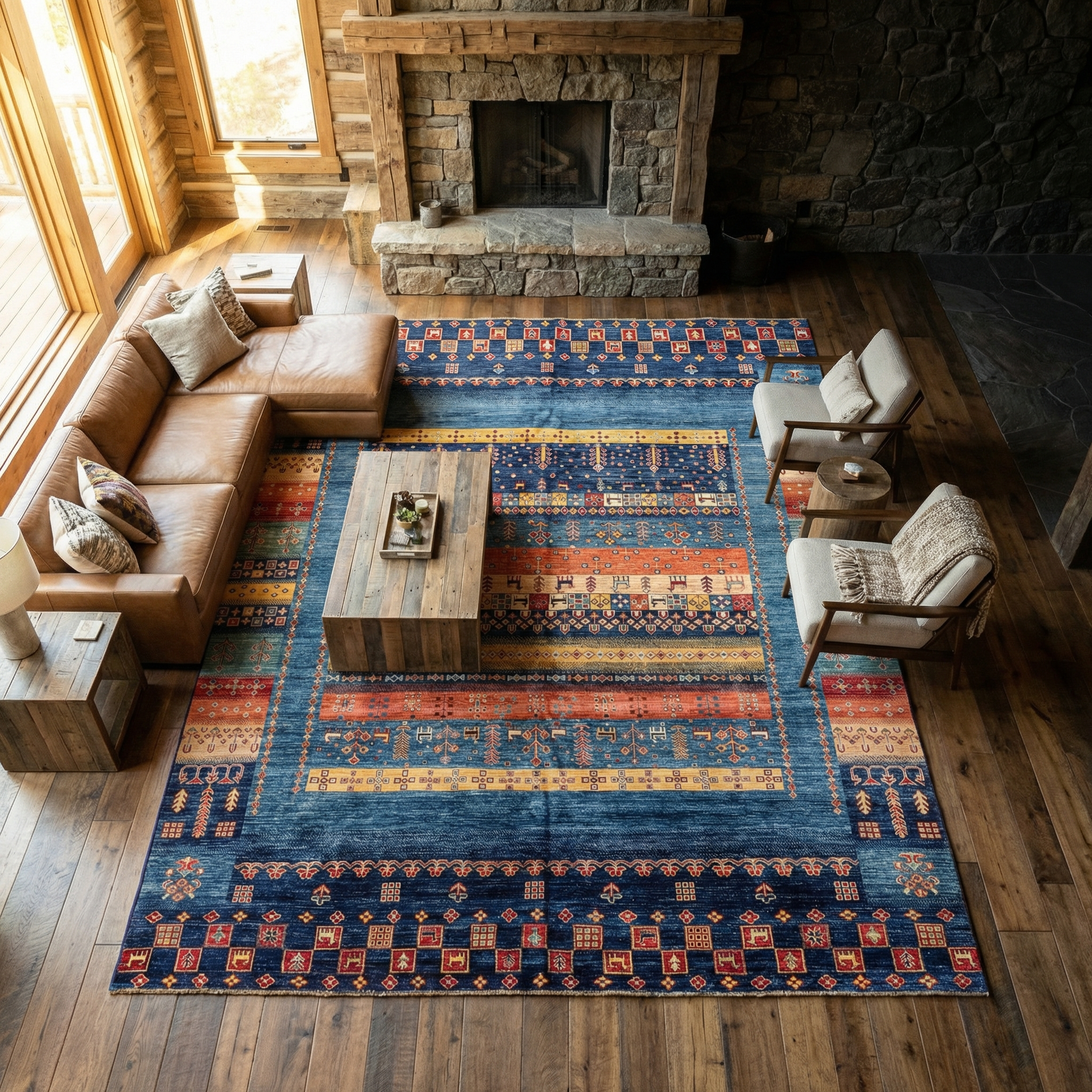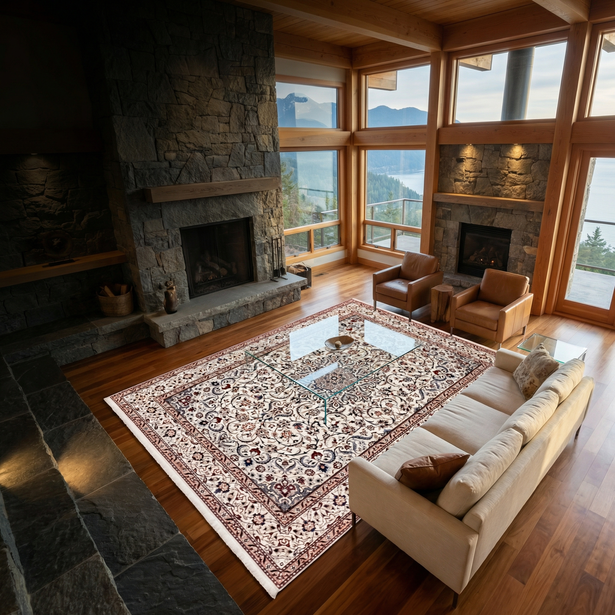 Pair a traditional persian rug with modern architecture for a tasteful pop