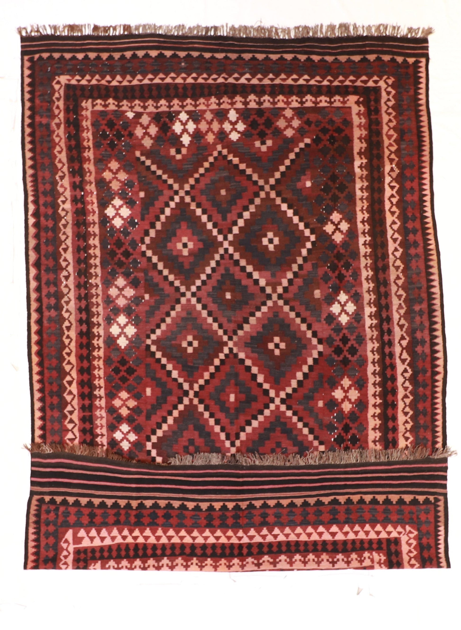 This exquisite 8.8x12.5 Kilim rug from Afghanistan boasts a vibrant color palette, featuring shades of Red, Black, White. Crafted with wool, this rug showcases a traditional Kilim design that adds a touch of elegance and a timeless charm to any space. With a thickness of 3/8 inch, this rectangular rug offers durability and comfort underfoot. Its size covers an impressive area, making it suitable for larger rooms. The Flatweave construction further enhances its durability, making it a perfect addition for high-traffic areas. Embrace the beauty and craftsmanship of this Kilim rug in your home.