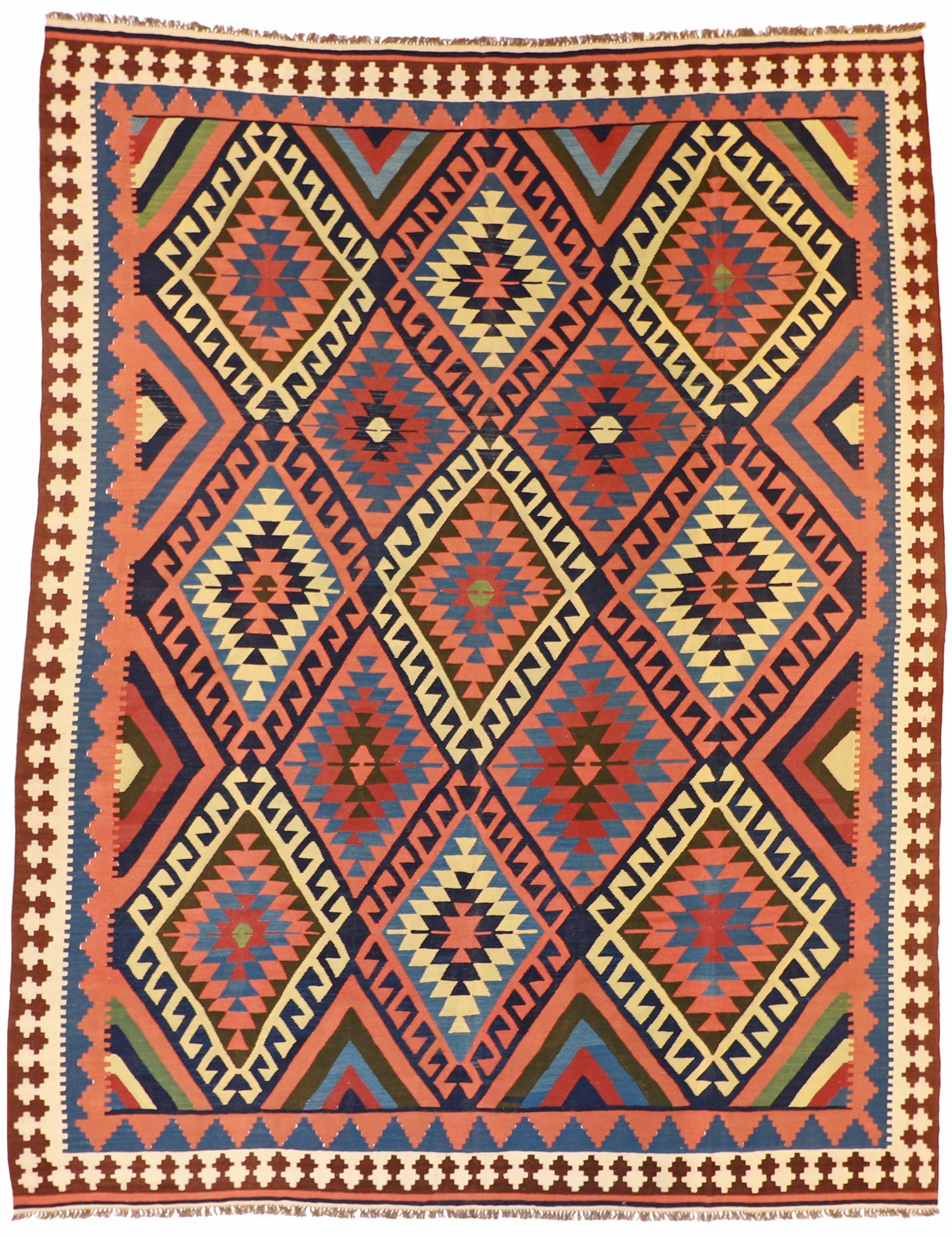 10x13 - Kilim Wool Geometric Rectangle - Hand Knotted Rug