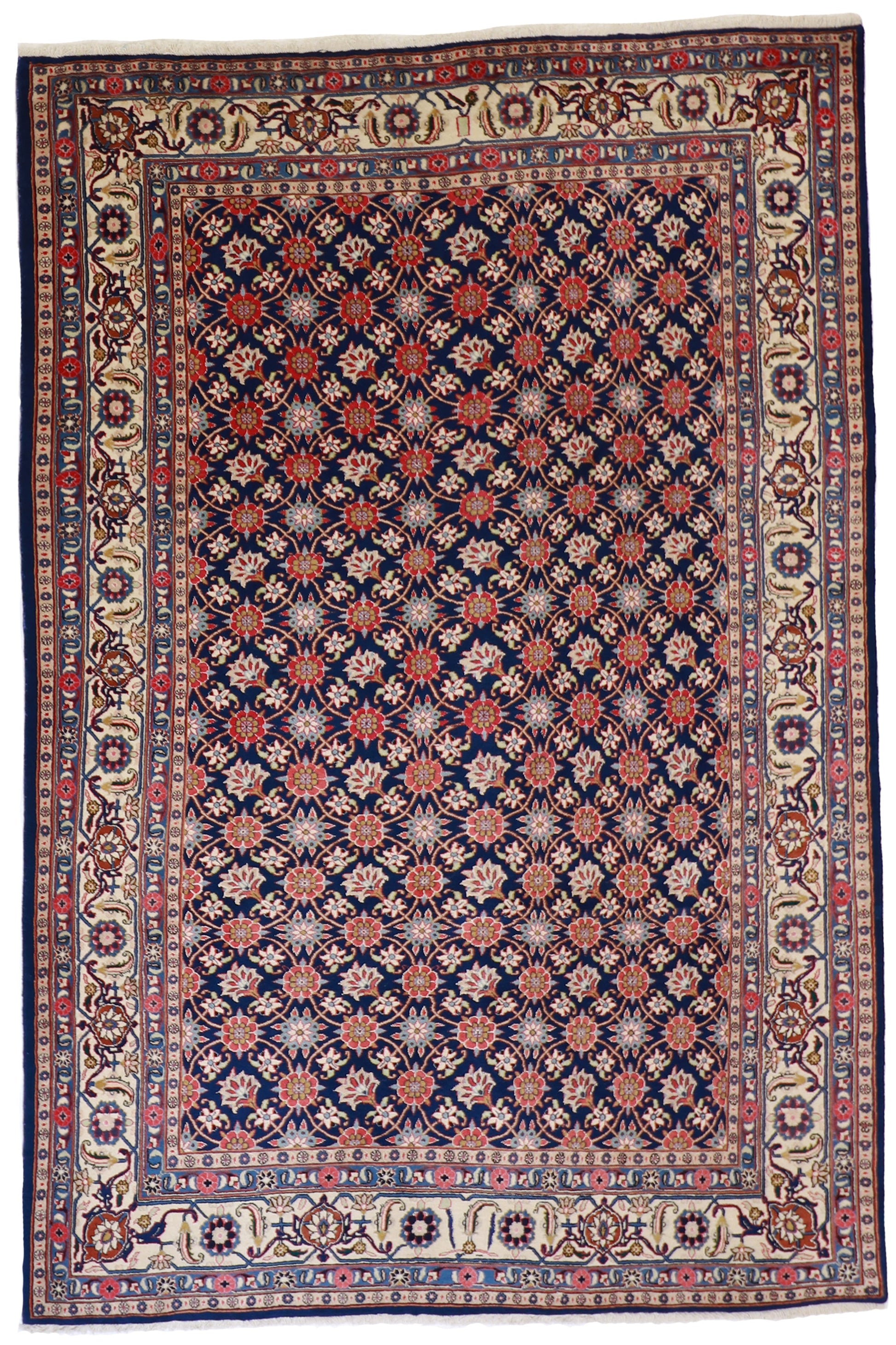 Introducing the Vermin Style Rug, a stunning addition to any home decor. This beautiful rug features an all-over design in vibrant colors including Red, Blue, Beige, Brown, and Green. With its rectangular shape and dimensions of 6.4x9.5, it is suitable for various spaces. Made from high-quality wool/silk, this rug offers a luxurious and comfortable feel underfoot. With a pile height of 1/4 inch, it adds a touch of warmth and texture to any room. Crafted in Persia, this rug showcases exquisite craftsmanship and is sure to elevate the aesthetic of your living space.