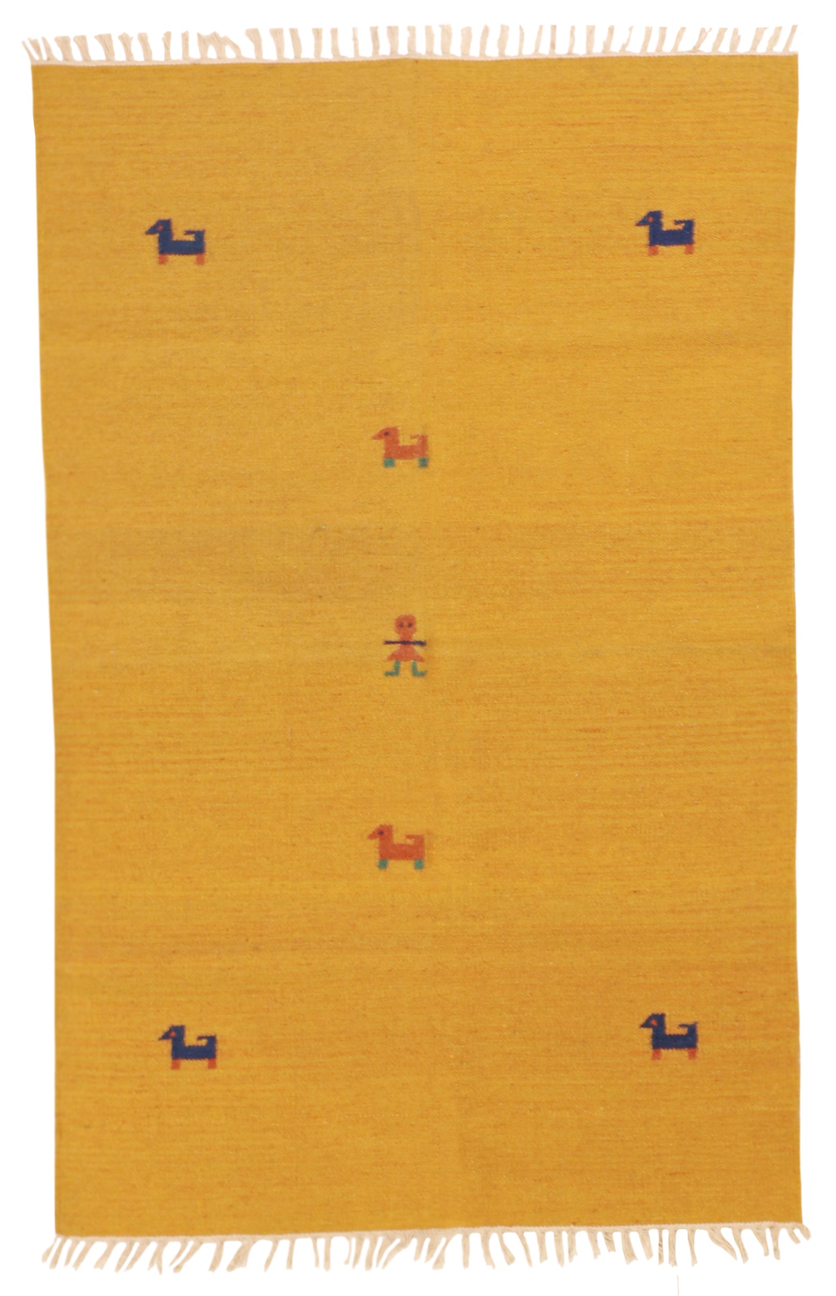 Introducing our stunning Kilim rug from India. This rectangular rug comes in trendy colors - Yellow, Orange, Blue, Green Perfect for adding a touch of elegance and style to any room, this Kilim rug is a must-have for those seeking a contemporary and fashionable addition to their home decor.