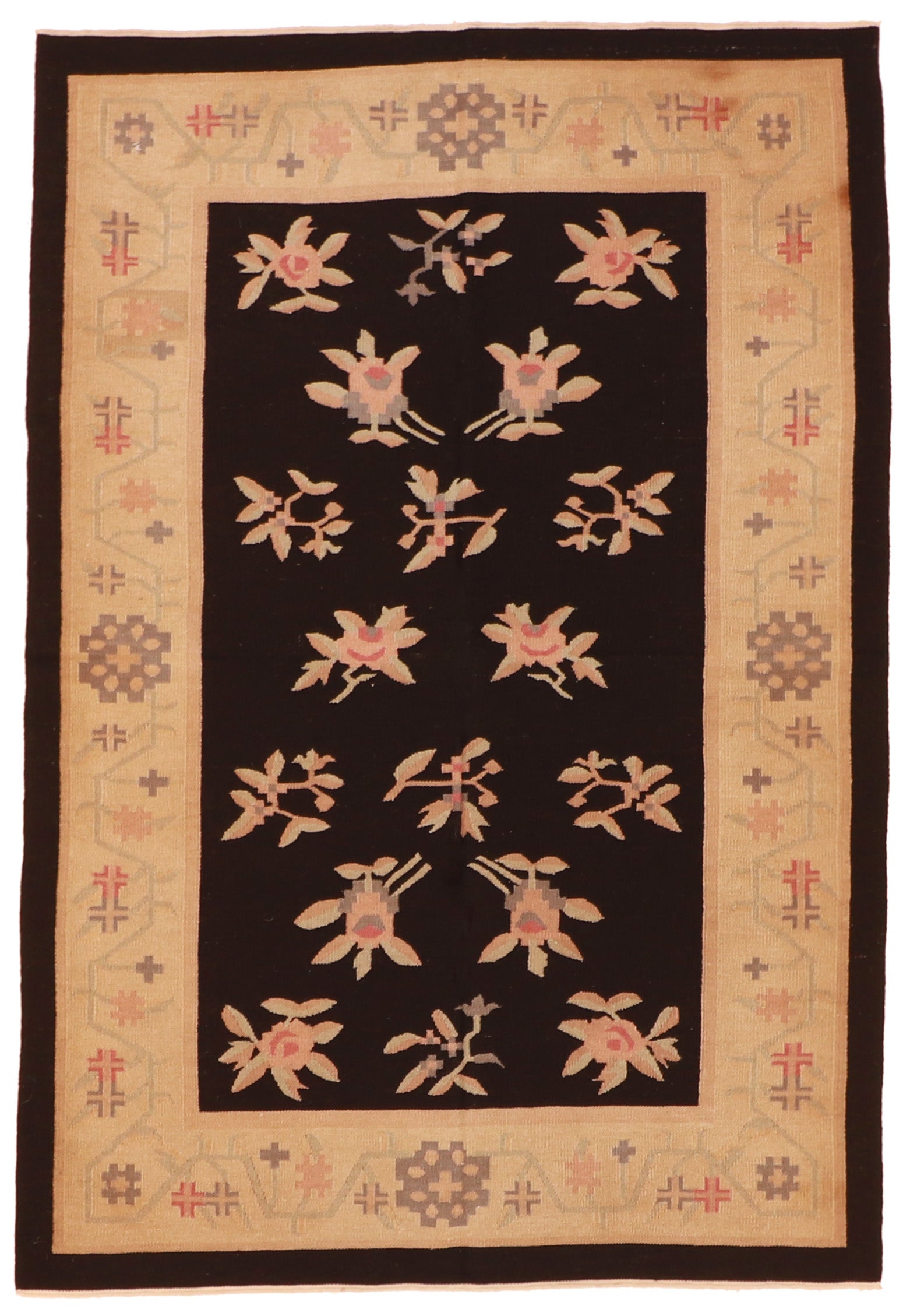This exquisite 4.1x6 Kilim rug from China boasts a vibrant color palette, featuring shades of Black, Olive, Beige, Lilac. Crafted with wool, this rug showcases a traditional Kilim design that adds a touch of elegance and a timeless charm to any space. With a thickness of 3/8 inch, this rectangular rug offers durability and comfort underfoot. Its size covers an impressive area, making it suitable for larger rooms. The Flatweave construction further enhances its durability, making it a perfect addition for high-traffic areas. Embrace the beauty and craftsmanship of this Kilim rug in your home.