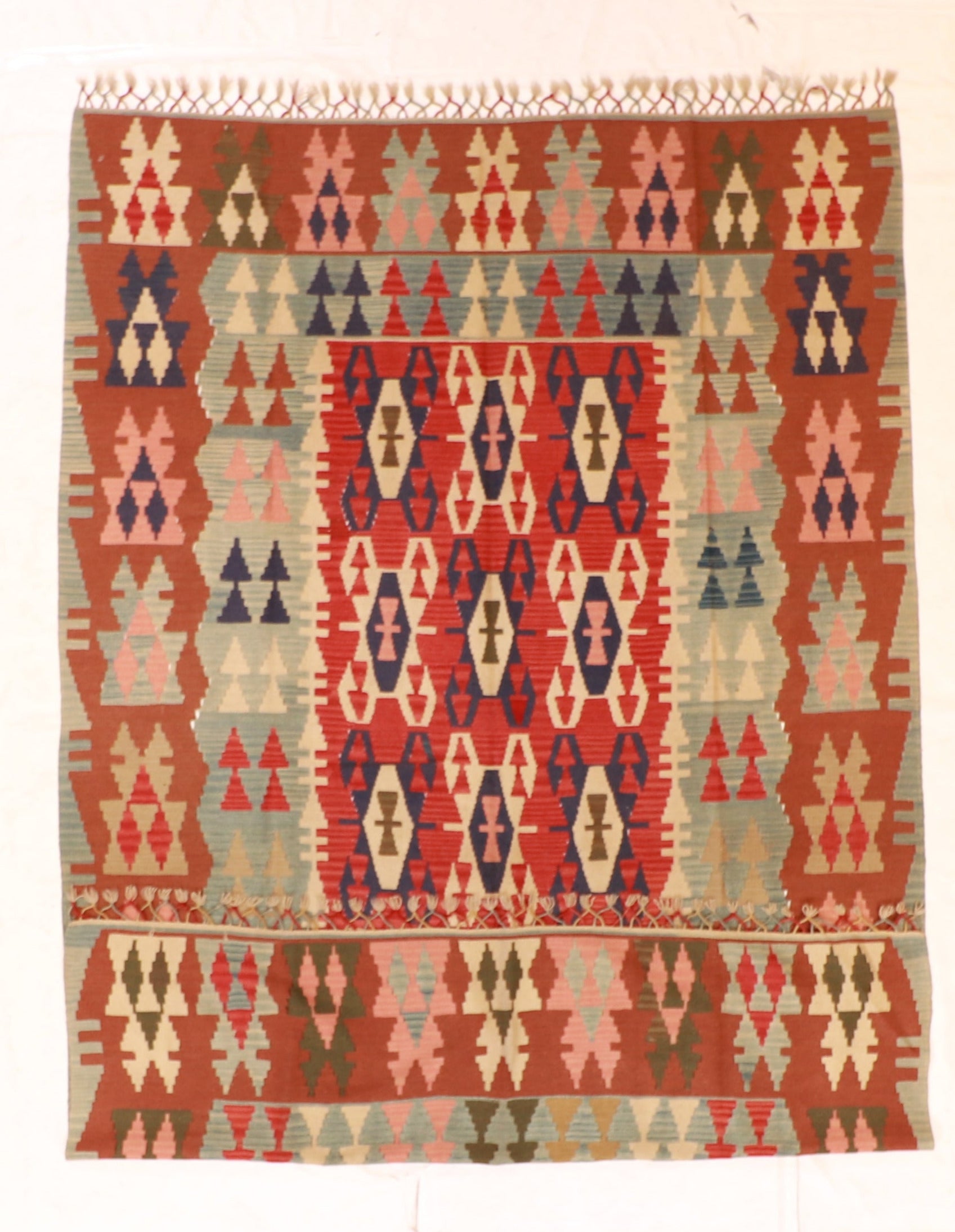 7x10 - Kilim Wool Geometric Rectangle - Hand Knotted Rug