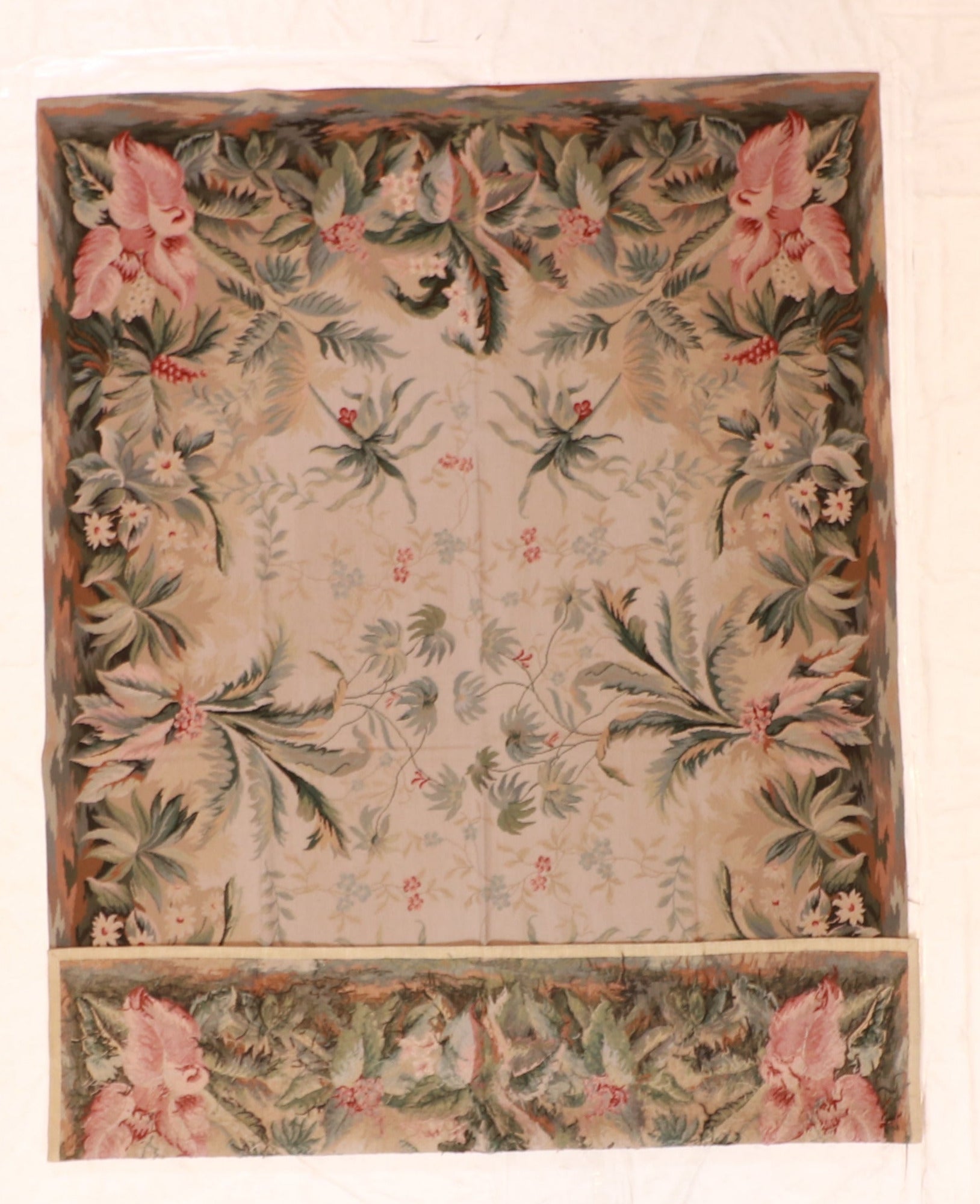 6x9 - Needle Point Wool Floral Rectangle - Hand Knotted Rug
