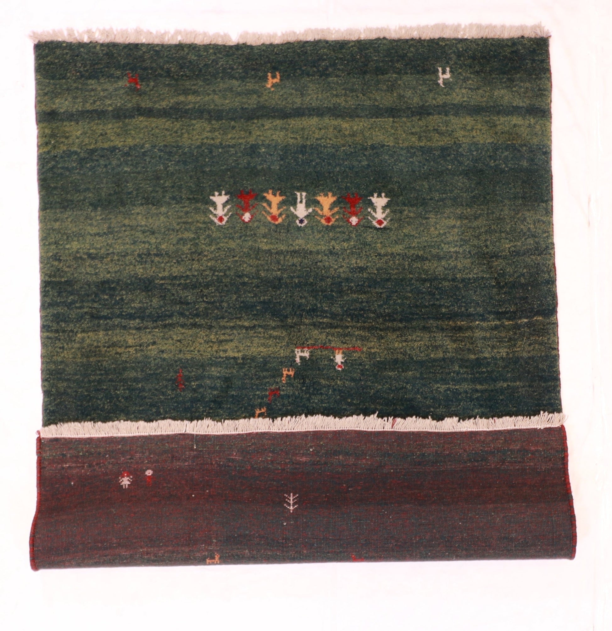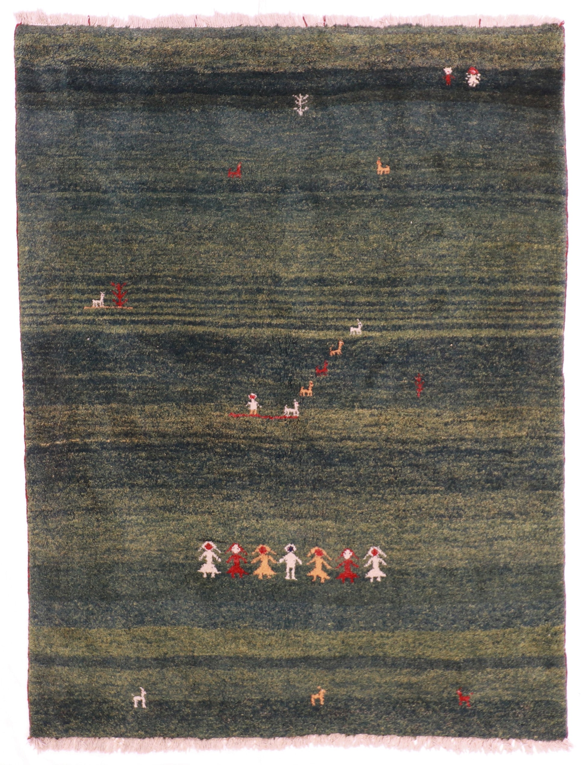 Introducing a stunning Gabbeh rug in a vibrant green, red, beige, yellow color palette. With its all-over design, this rectangular rug adds a touch of elegance to any space. This pile rug brings warmth and style to your home. Enhance your decor with this beautiful Gabbeh rug today.