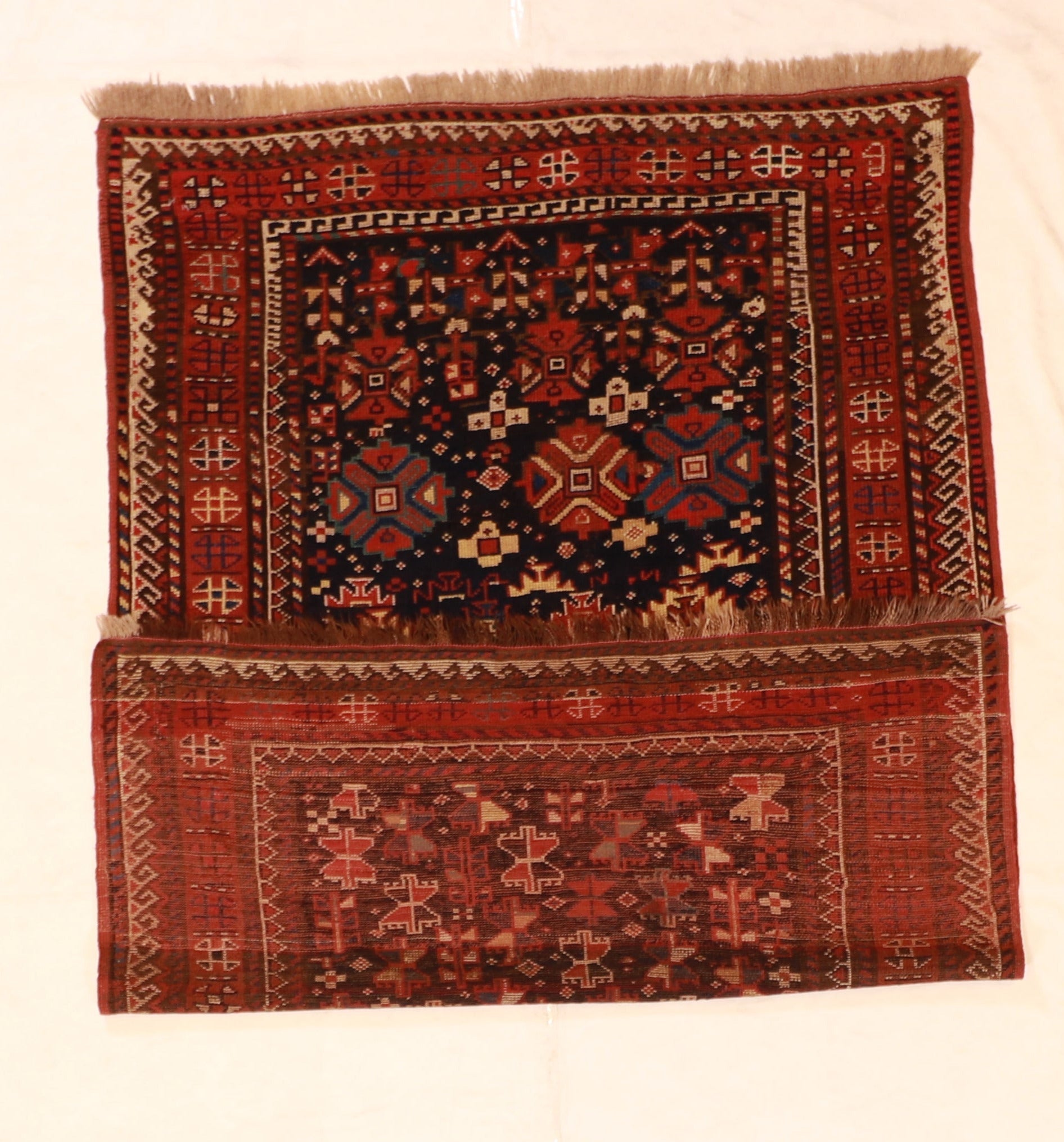 This exquisite 4.5x6.2 Azari rug from Persia boasts a vibrant color palette, featuring shades of Maroon, Black, Tan, Navy, White. Crafted with Antique/Wool, this rug showcases a traditional Azari design that adds a touch of elegance and a timeless charm to any space. With a thickness of 3/8 inch, this rectangular rug offers durability and comfort underfoot. Its size covers an impressive area, making it suitable for larger rooms. The Flatweave construction further enhances its durability, making it a perfect addition for high-traffic areas. Embrace the beauty and craftsmanship of this Azari rug in your home.