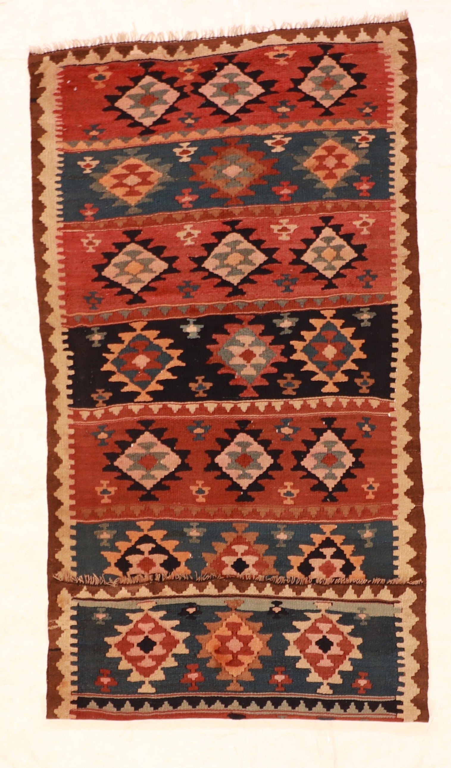 This exquisite 3.6x7.7 Azari rug from Persia boasts a vibrant color palette, featuring shades of Navy, Beige, Brown, Rust, Blue. Crafted with Antique/Wool, this rug showcases a traditional Azari design that adds a touch of elegance and a timeless charm to any space. With a thickness of 3/8 inch, this rectangular rug offers durability and comfort underfoot. Its size covers an impressive area, making it suitable for larger rooms. The Flatweave construction further enhances its durability, making it a perfect addition for high-traffic areas. Embrace the beauty and craftsmanship of this Azari rug in your home.