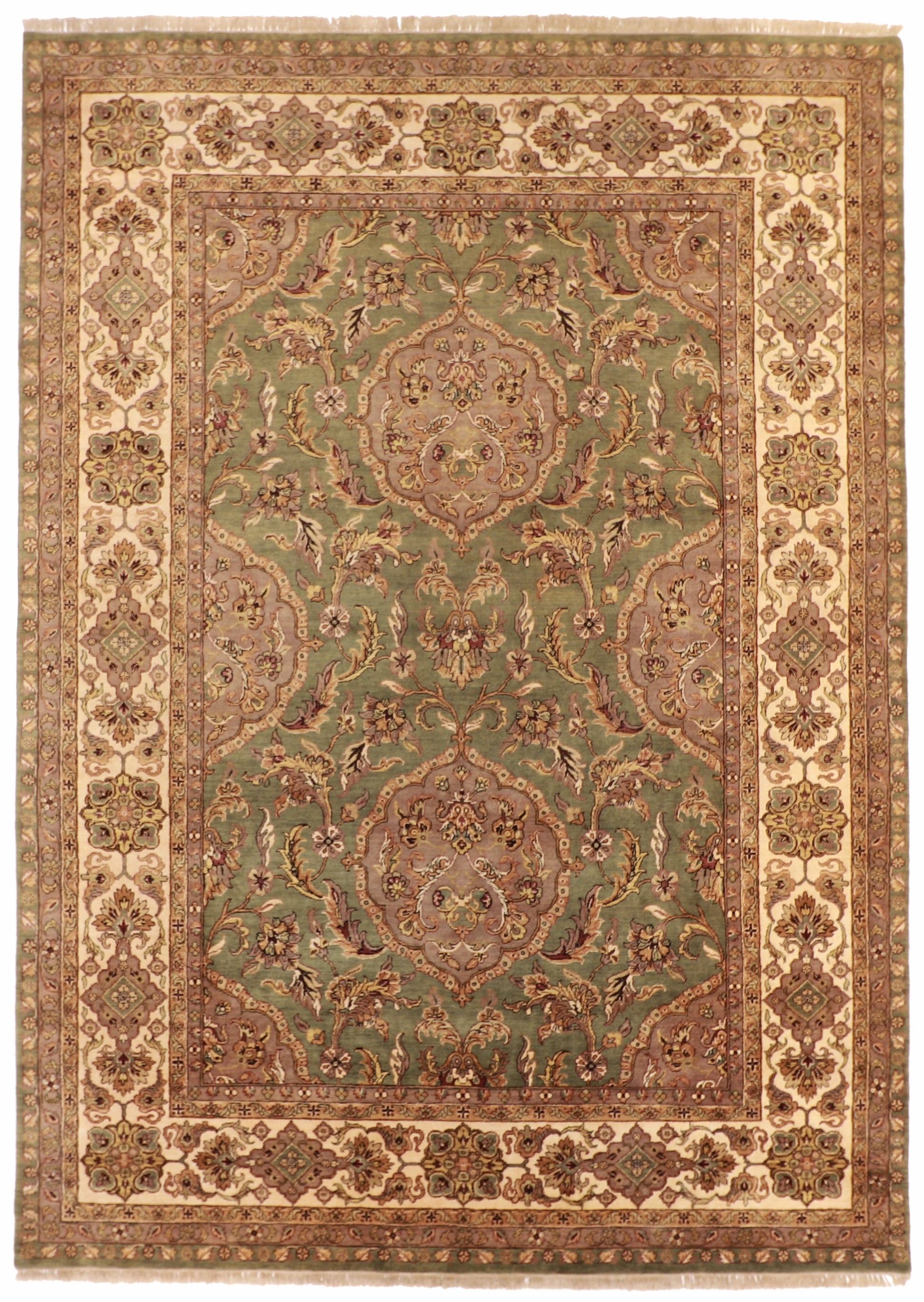 Introduce luxurious elegance to your living space with this stunning Isfahan design rug from India . The vibrant colors of Green, Beige, Grey, Brown create an eye-catching appeal, while the all-over design adds a touch of sophistication. Crafted with the finest materials, this rug offers a soft and plush feel, perfect for walking or lounging. With a size of 10x14, it can effortlessly fill larger rooms with its rectangular shape. The 1/4-inch thickness adds comfort and durability, making it suitable for high-traffic areas. Transform your home into a stylish sanctuary with this beautiful rug.