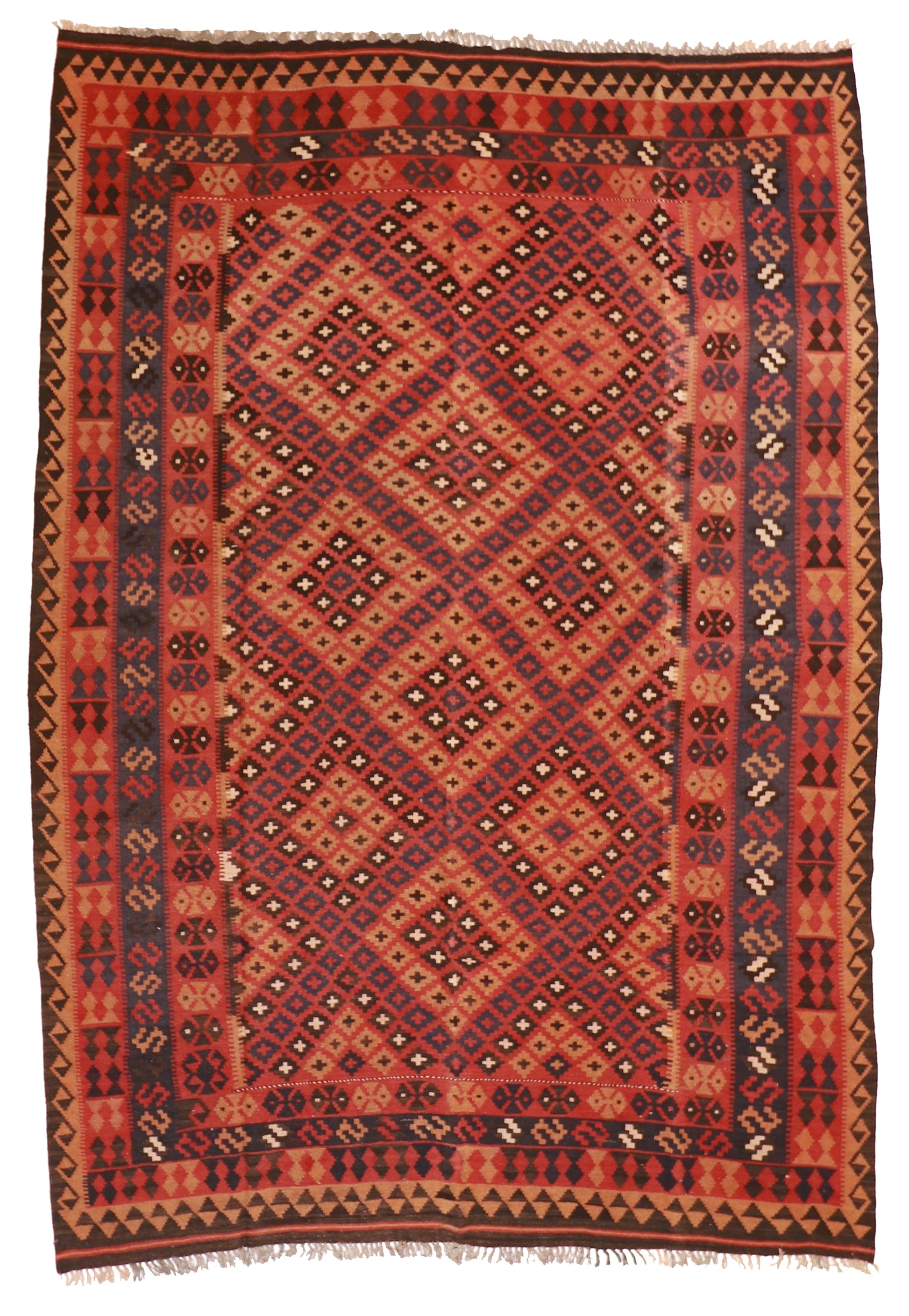 7x10 - Kilim Wool Geometric Rectangle - Hand Knotted Rug