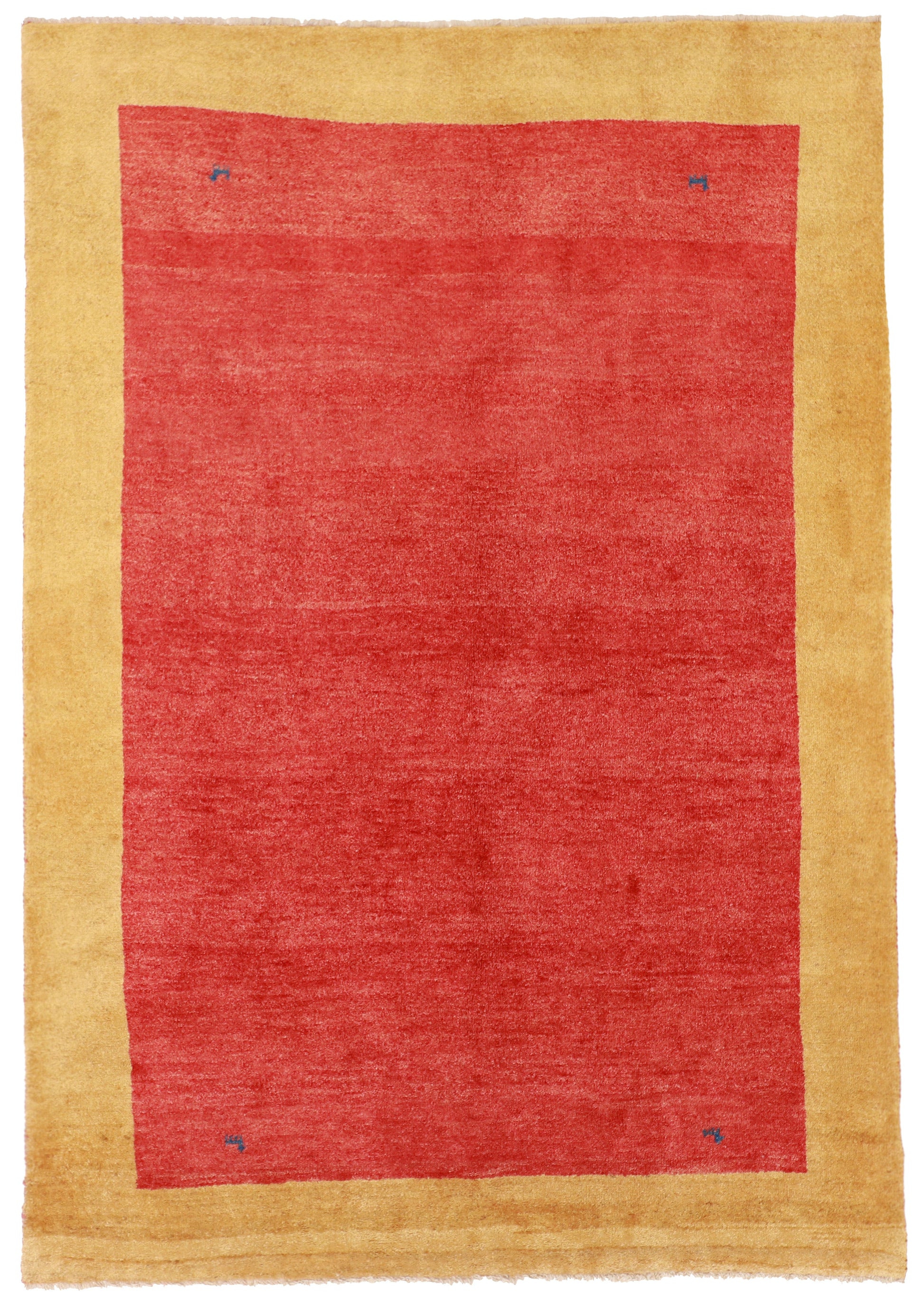 Introducing a stunning Gabbeh rug in a vibrant Red, Yellow, Green color palette. With its all-over design, this rectangular rug adds a touch of elegance to any space. This pile rug brings warmth and style to your home. Enhance your decor with this beautiful Gabbeh rug today.