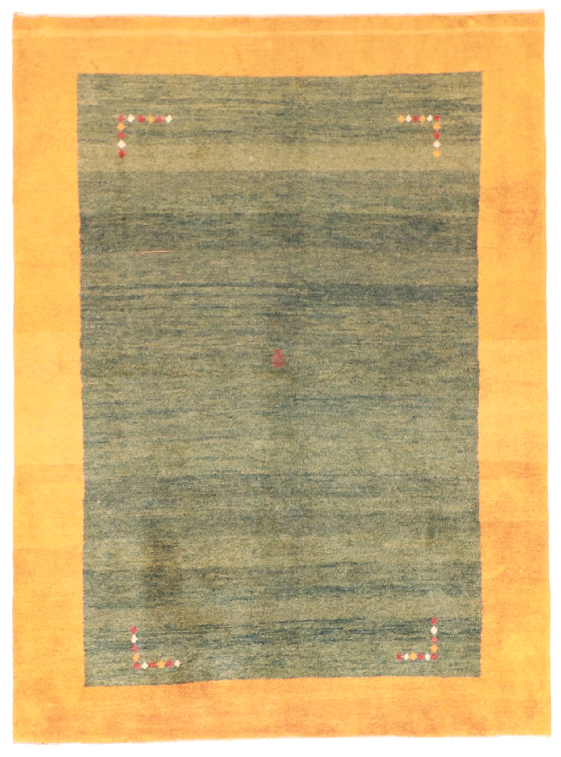 Immerse yourself in the timeless charm of our Persian Gabbeh rug, showcasing a soothing color palette of Green, Yellow, Red. The All Over design adds a touch of traditional elegance to your decor, while the Rectangle shape effortlessly fits into any room. Measuring 7.5x10 feet with a thickness of 1/4 inch, it offers both style and comfort. Crafted from wool, it ensures durability and a luxurious texture. This Pile rug covers an impressive area, reflecting the artistry and heritage of Persian craftsmanship. Embrace the enduring allure of this Gabbeh Pile rug and let it transform your living space with grace and sophistication.