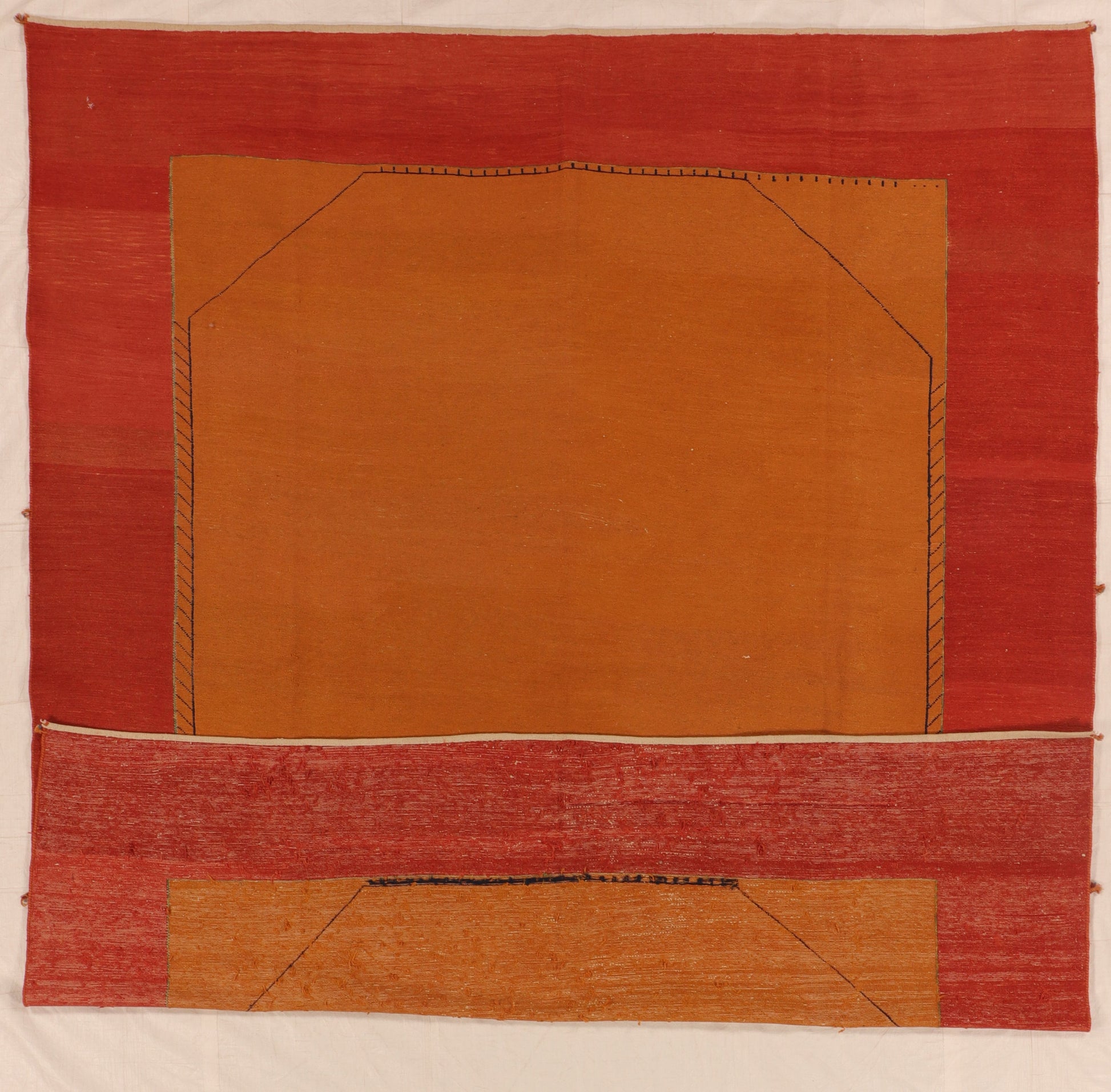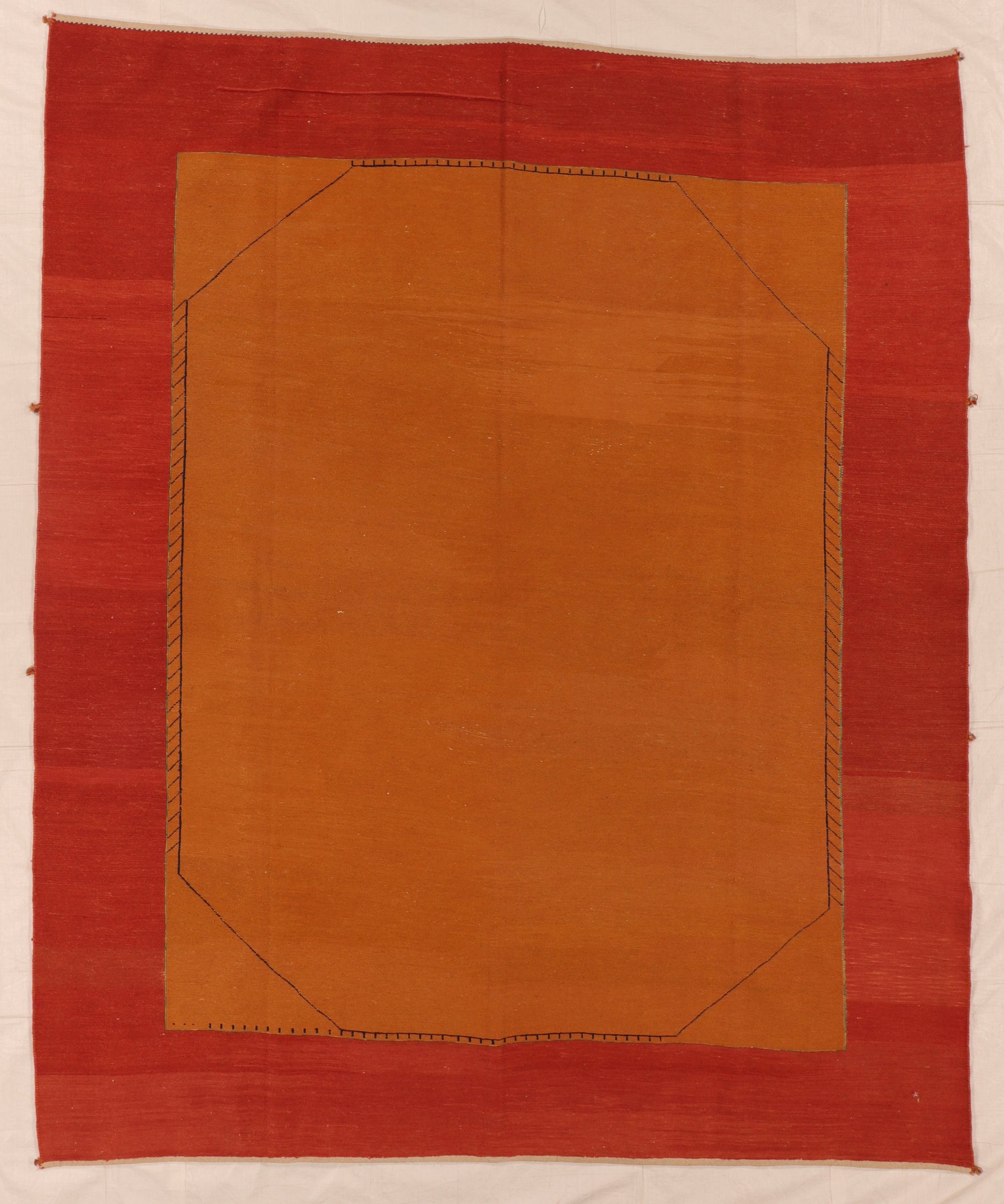 Introducing a stunning rug with a captivating design and exquisite craftsmanship. This Soumak-style rug features an eye-catching geometric pattern, perfectly blending traditional charm with contemporary elegance. Made with fine wool, it showcases a harmonious combination of colors, including Orange, Burnt Red, adding depth and versatility to any space. With its rectangular shape and dimensions of 8.10x10.9, this rug is ideal for defining and enhancing various areas of your home. Its 1/4-inch thickness offers durability and comfort underfoot. Crafted in Persia, this high-quality pile rug is a perfect fusion of artistry and functionality.
