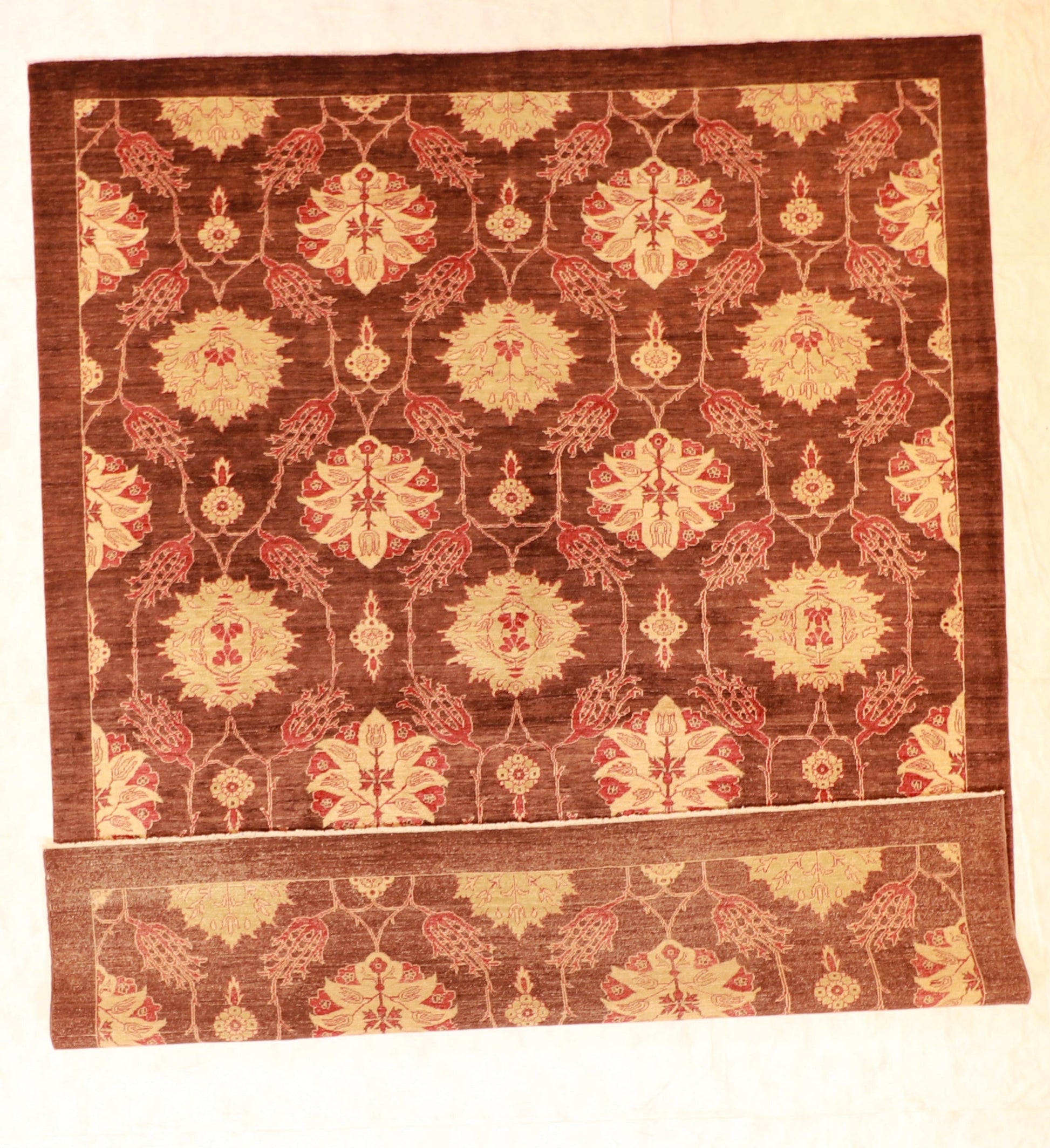 Introducing the Sh Abbas All Over Design Rectangle Rug, a stunning piece of artistry for your home. This fine rug, originating from India, comes in an array of rich colors including Brown, Olive, Tan, Red. With a size of 9x11.1 feet and a thickness of 1/4 inch, it covers an impressive area. Made from high-quality materials, it boasts a pile texture. The elegant all-over design adds a touch of sophistication to any room, making it the perfect addition to your home decor. Transform your space with this exquisite Sh Abbas rug today.