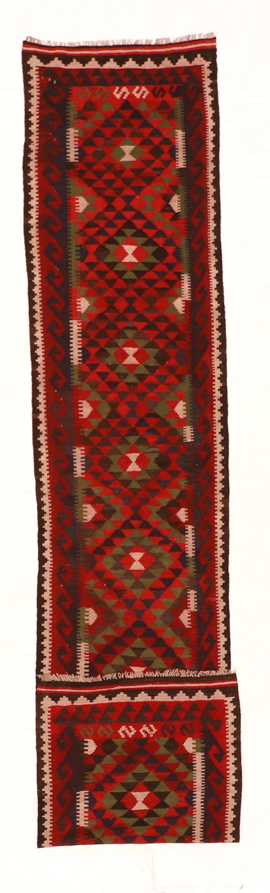 This exquisite 2.5x11.11 Kilim rug from Afghanistan boasts a vibrant color palette, featuring shades of Red, Green, Tan, Black, Brown. Crafted with wool, this rug showcases a traditional Kilim design that adds a touch of elegance and a timeless charm to any space. With a thickness of 3/8 inch, this rectangular rug offers durability and comfort underfoot. Its size covers an impressive area, making it suitable for larger rooms. The Flatweave construction further enhances its durability, making it a perfect addition for high-traffic areas. Embrace the beauty and craftsmanship of this Kilim rug in your home.