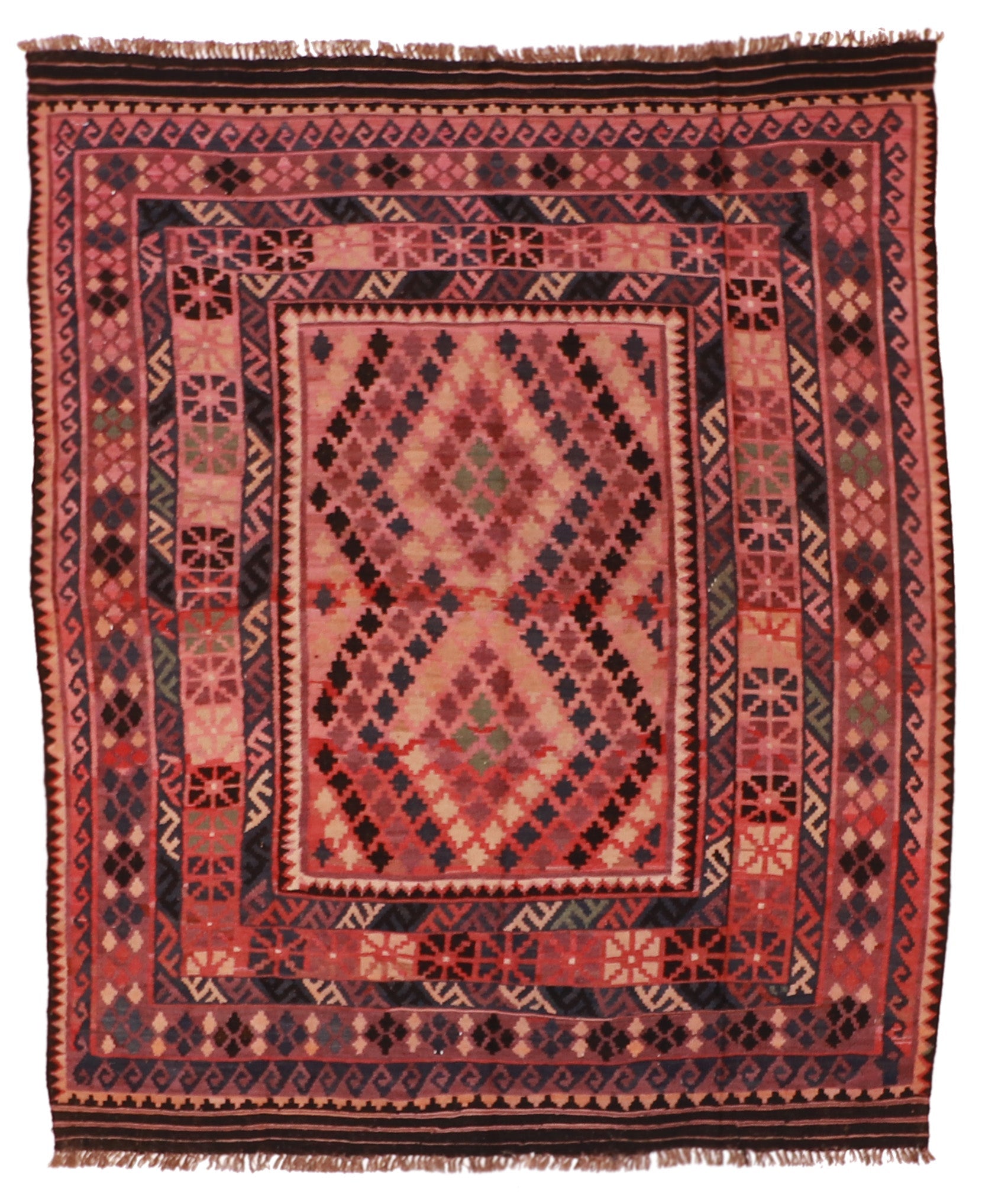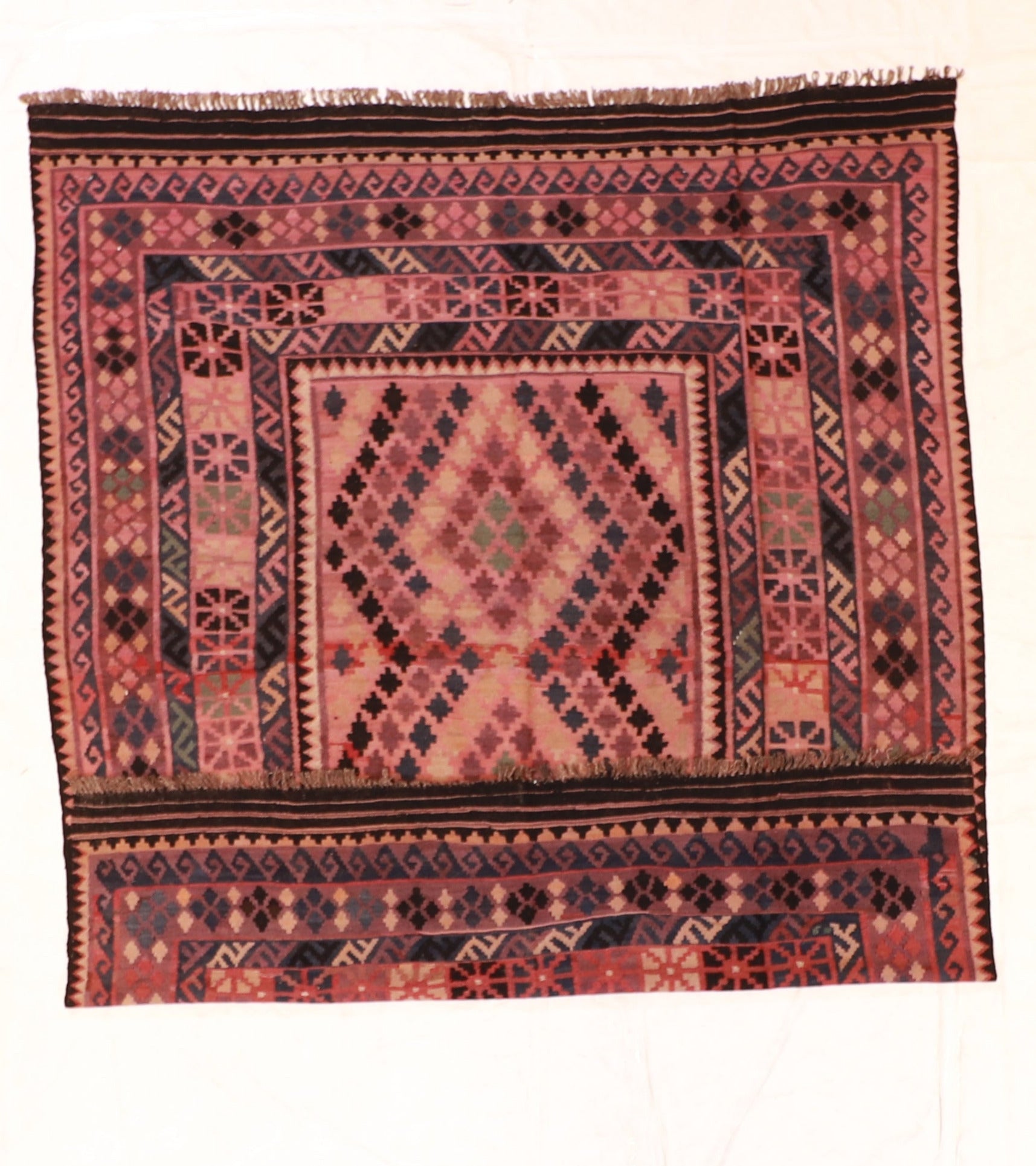 This exquisite 6.6x7.10 Kilim rug from Pakistan boasts a vibrant color palette, featuring shades of Rust, Red, Green, Black, Navy, Tan. Crafted with Fine/Wool, this rug showcases a traditional Kilim design that adds a touch of elegance and a timeless charm to any space. With a thickness of 3/8 inch, this rectangular rug offers durability and comfort underfoot. Its size covers an impressive area, making it suitable for larger rooms. The Flatweave construction further enhances its durability, making it a perfect addition for high-traffic areas. Embrace the beauty and craftsmanship of this Kilim rug in your home.