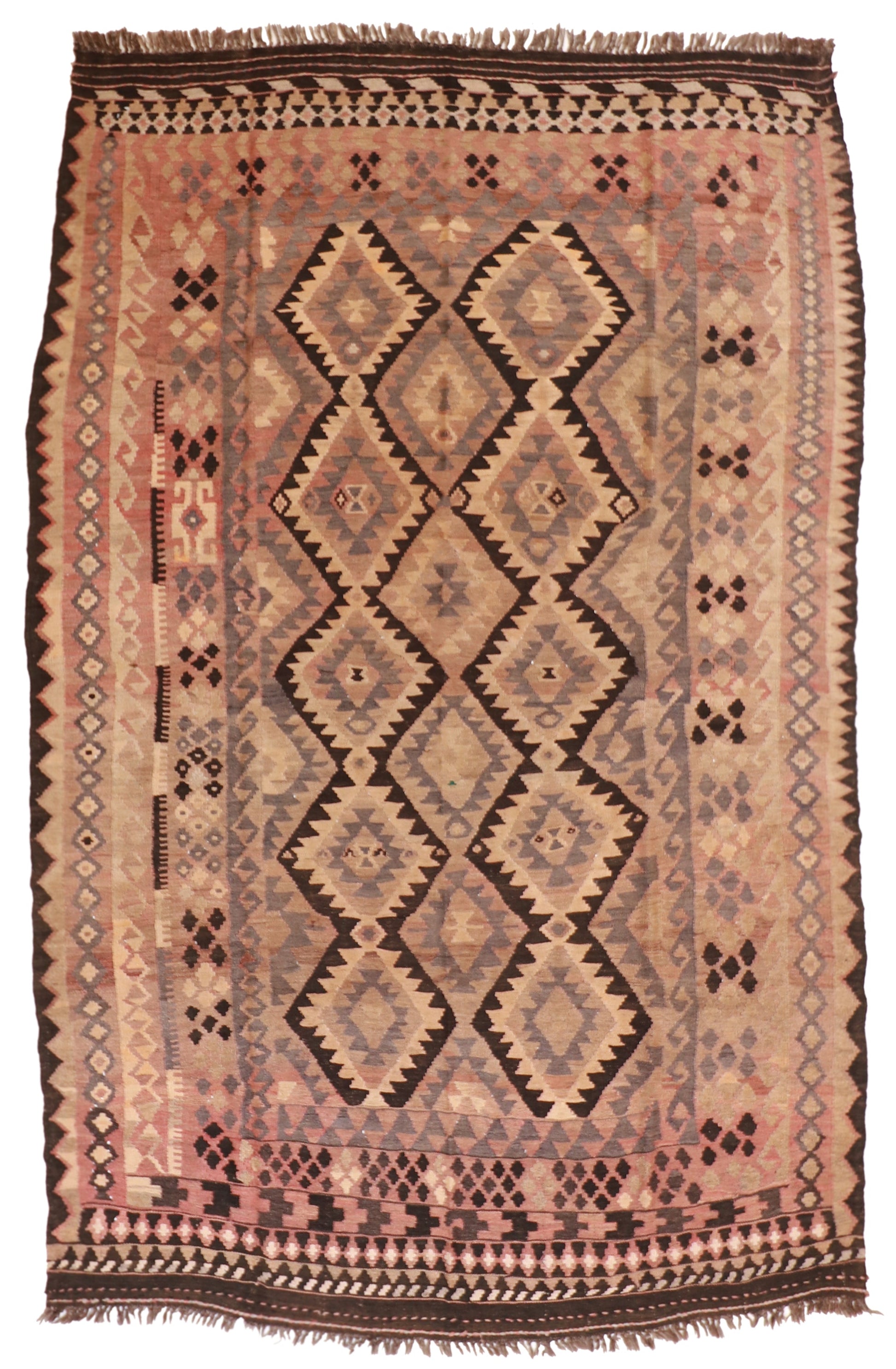 This exquisite 6.4x10 Kilim rug from Afghanistan boasts a vibrant color palette, featuring shades of Rust, Grey, Beige, Black. Crafted with wool, this rug showcases a traditional Kilim design that adds a touch of elegance and a timeless charm to any space. With a thickness of 3/8 inch, this rectangular rug offers durability and comfort underfoot. Its size covers an impressive area, making it suitable for larger rooms. The Flatweave construction further enhances its durability, making it a perfect addition for high-traffic areas. Embrace the beauty and craftsmanship of this Kilim rug in your home.