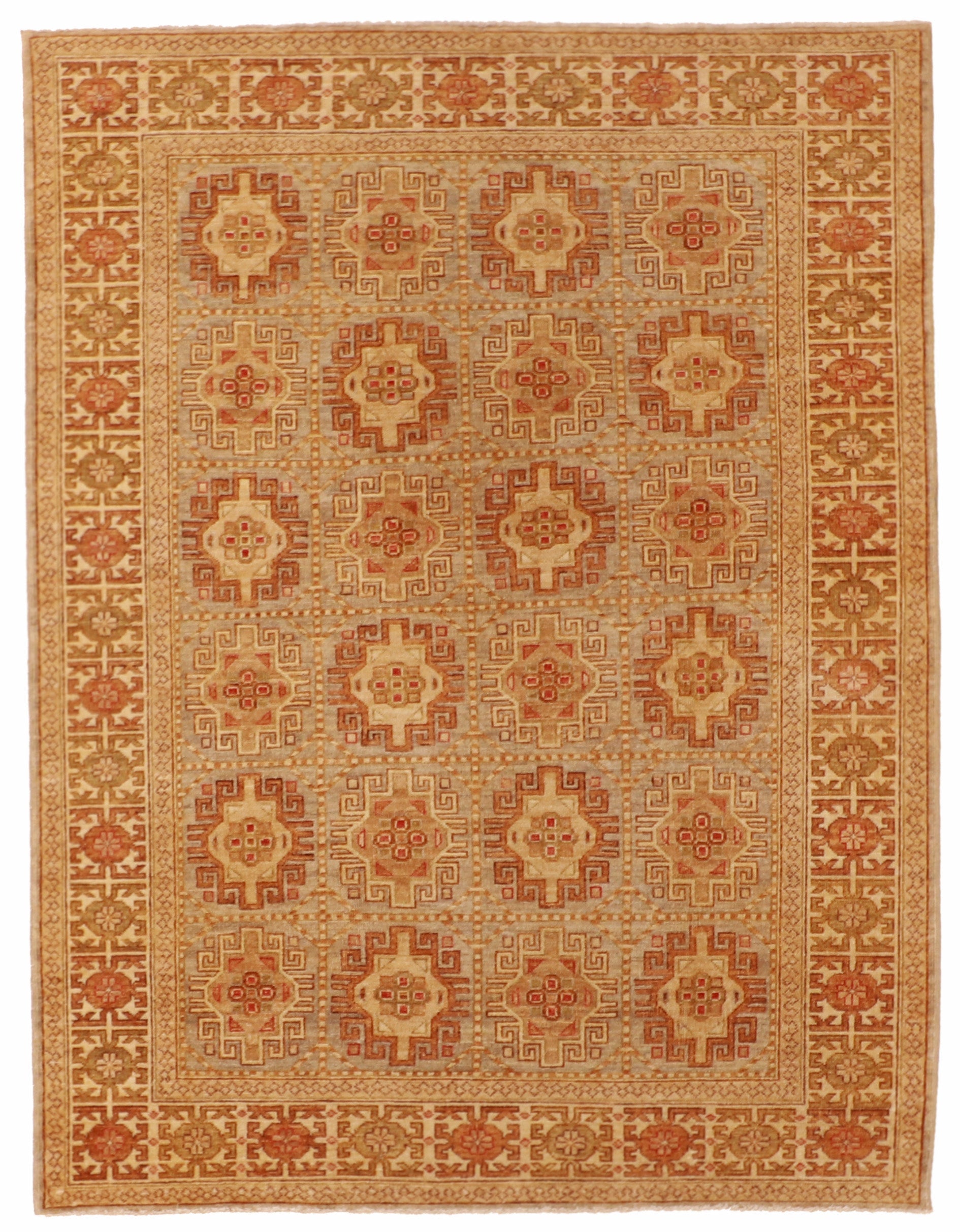 5x7 - Khotan Fine/Wool Geometric Rectangle - Hand Knotted Rug
