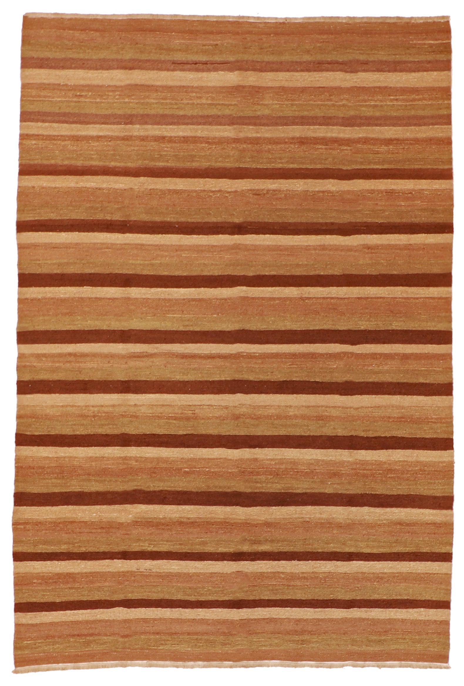 Introducing a stunning rug with a captivating design and exquisite craftsmanship. This Soumak-style rug features an eye-catching all over pattern, perfectly blending traditional charm with contemporary elegance. Made with fine wool, it showcases a harmonious combination of colors, including Brown, Tan, Sand, adding depth and versatility to any space. With its rectangular shape and dimensions of 6.3x9, this rug is ideal for defining and enhancing various areas of your home. Its 1/4-inch thickness offers durability and comfort underfoot. Crafted in Persia, this high-quality pile rug is a perfect fusion of artistry and functionality.