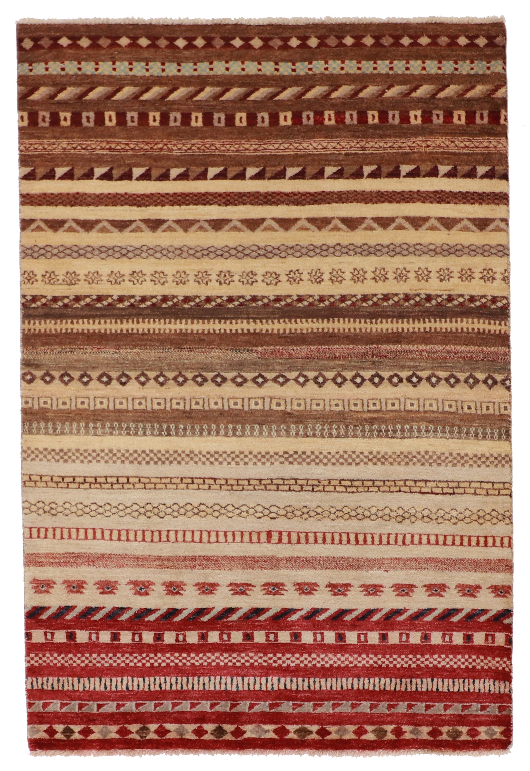 Transform your living space with this elegant and modern rug. This All Over design rug comes in a subtle color palette of Brown, Tan, Red, Soft Blue, making it a versatile addition to any room. Its dimensions are 4 feet in width and 6 feet in length, covering a generous area. With a thickness of 1/4 inch, it strikes the perfect balance between comfort and sturdiness. Crafted with a fine pile, this rug is designed to withstand the test of time while adding a touch of contemporary style to your home. Upgrade your decor with this exquisite modern rug from India.