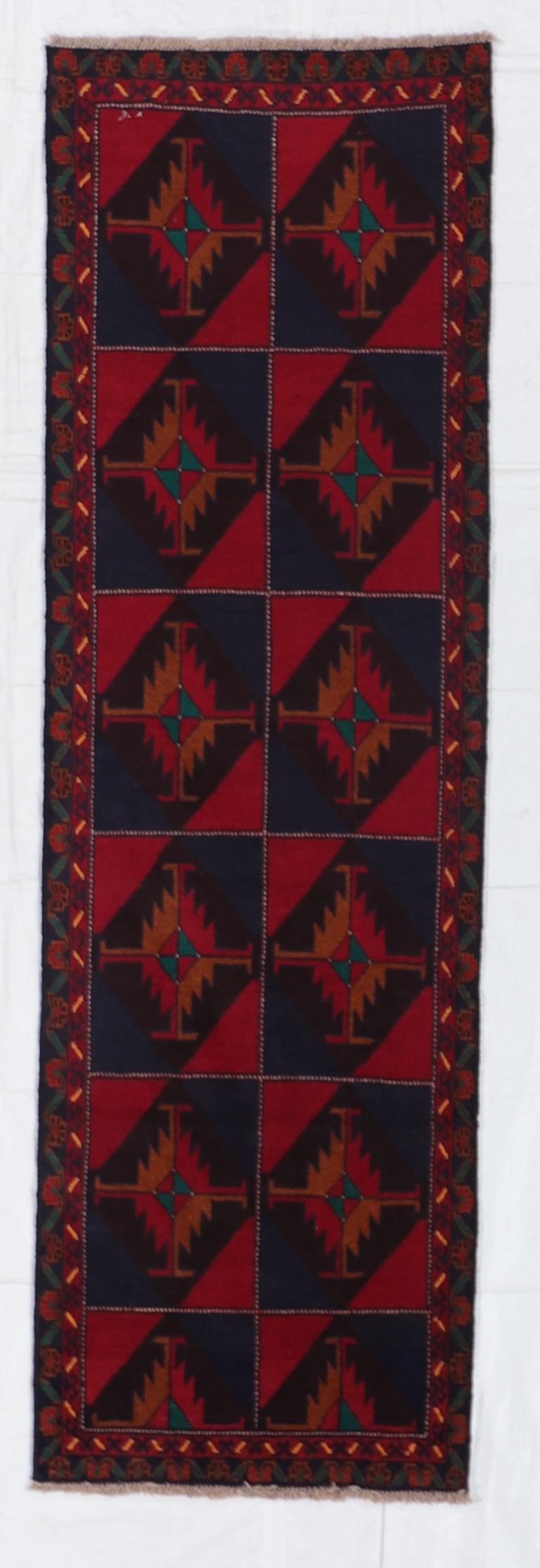 Runner - Baluch Fine/Wool Geometric Rectangle - Hand Knotted Rug