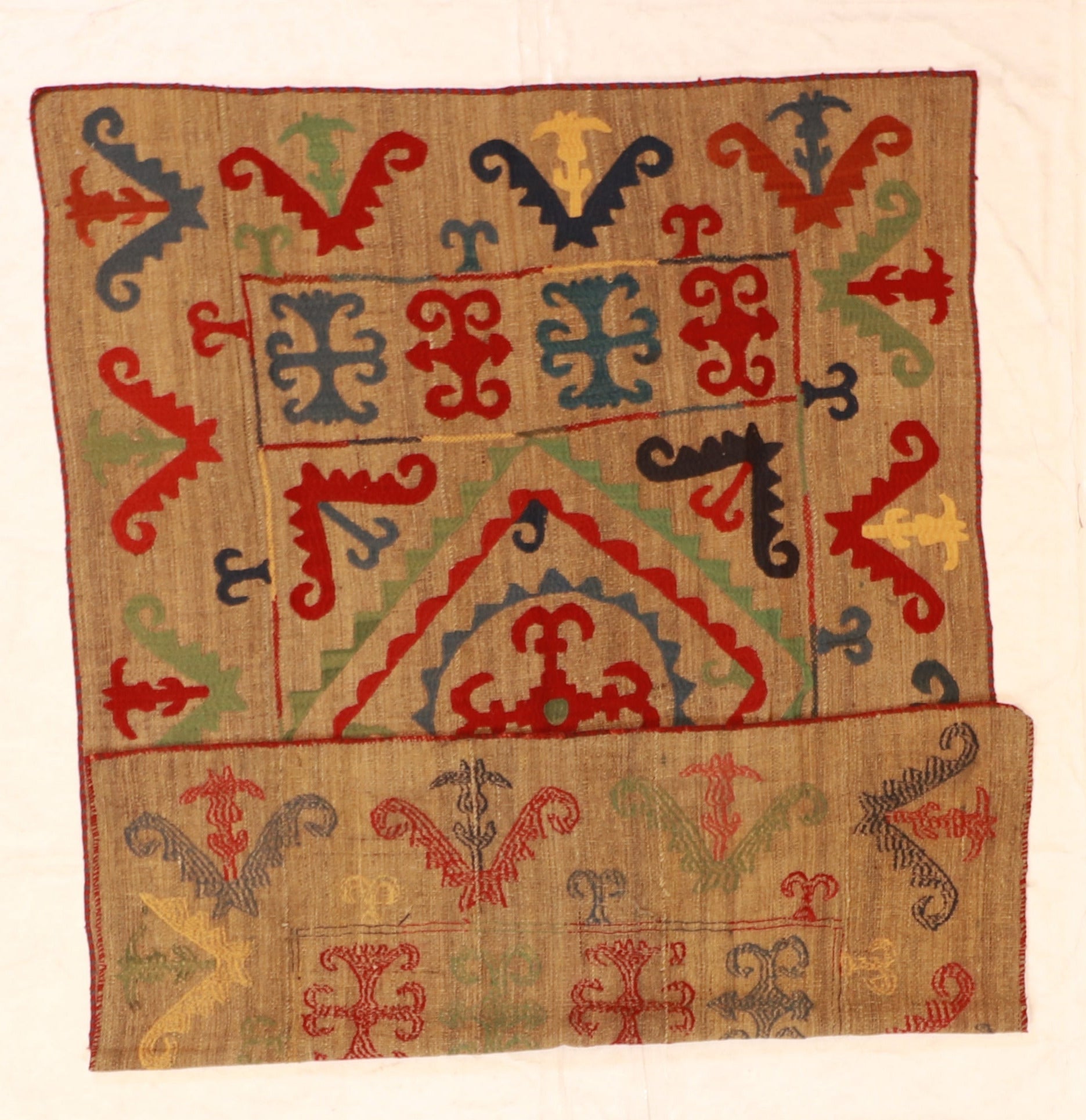 Introducing our stunning Suzani rug. This exquisite all over design, featuring vibrant shades of Brown, Navy, Red, Green, Yellow will add a touch of elegance to any space. Made with fine wool material and Pile construction, this rug is not only visually appealing but also durable. The rug's thickness of 1/4 inch provides a comfortable and cozy feel underfoot. Enhance your home decor with this authentic and high-quality Suzani rug. This is a tribal one of a kind piece.