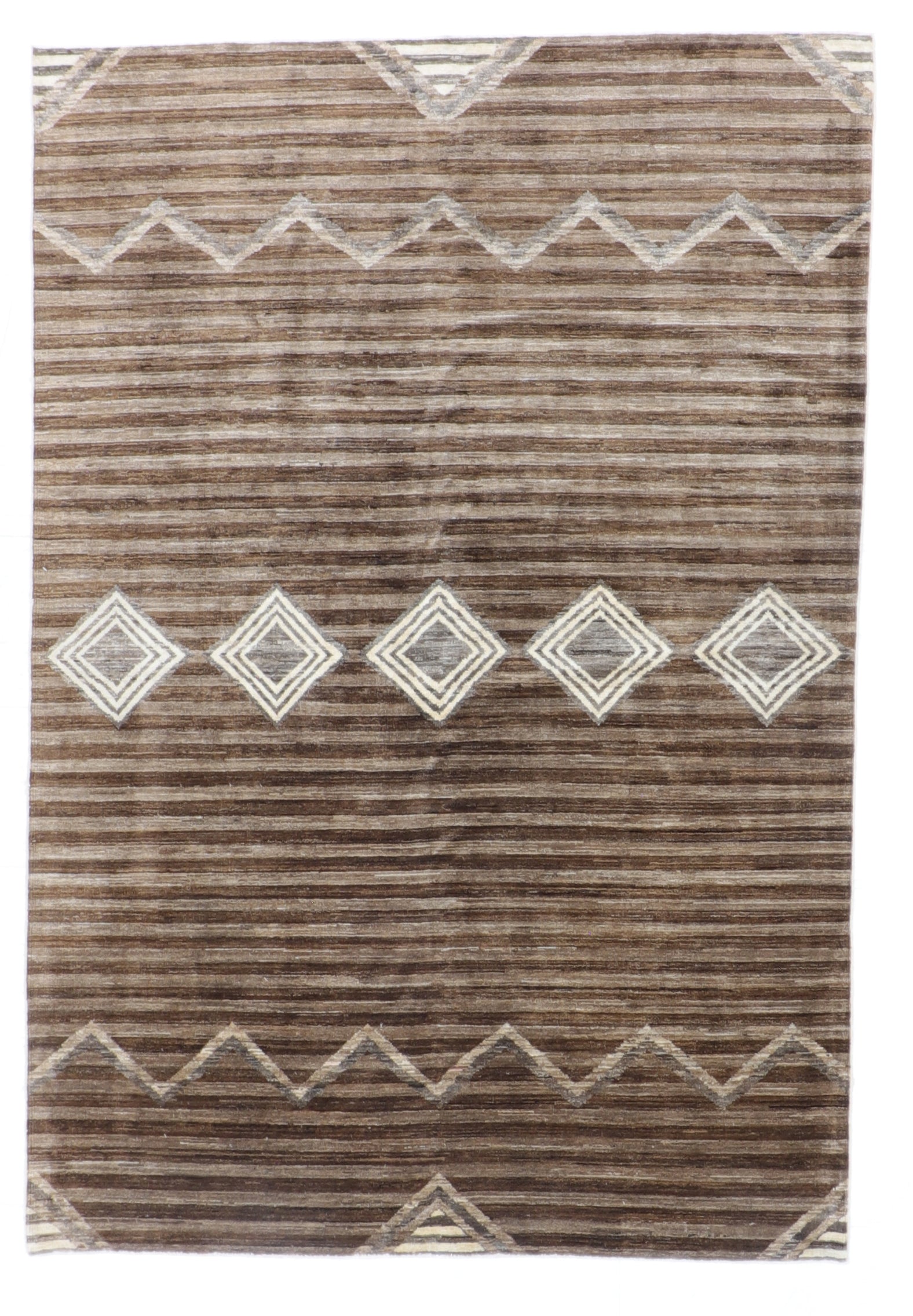 Introducing our stunning Mountain Modern Rectangle Rug from Pakistan. Crafted with care, this rug is made of high-quality wool material, ensuring both durability and comfort. Its all-over design features a beautiful combination of brown, tan, and grey colors, creating a versatile and stylish piece that effortlessly blends into any decor. With a size of 6.3x9 feet, this rug covers an impressive area, providing ample space for you to enjoy. The pile thickness of 1/8 inch adds a luxurious touch to your space. Upgrade your home with this exquisite rug and experience the perfect balance of elegance and simplicity.