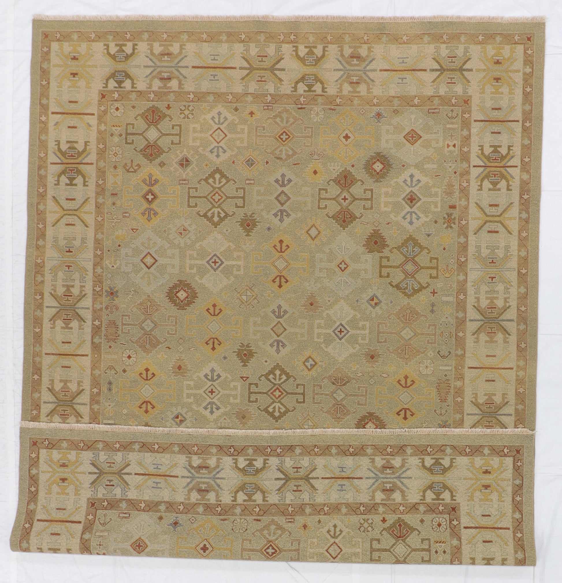 This rectangular Mahal rug from India is a stunning addition to any home. With its all-over design and vibrant colors of Light Green, Blue, Rust, Gold, it brings a touch of elegance to any room. Made from fine wool, this rug has a 3/8 inch thickness and is a pile style. Measuring 9x12 feet in size, it covers a spacious area. The high-quality craftsmanship and intricate detailing showcase the rich cultural heritage of India. Whether placed in a living room, dining area, or bedroom, this rug adds warmth and beauty to any space.