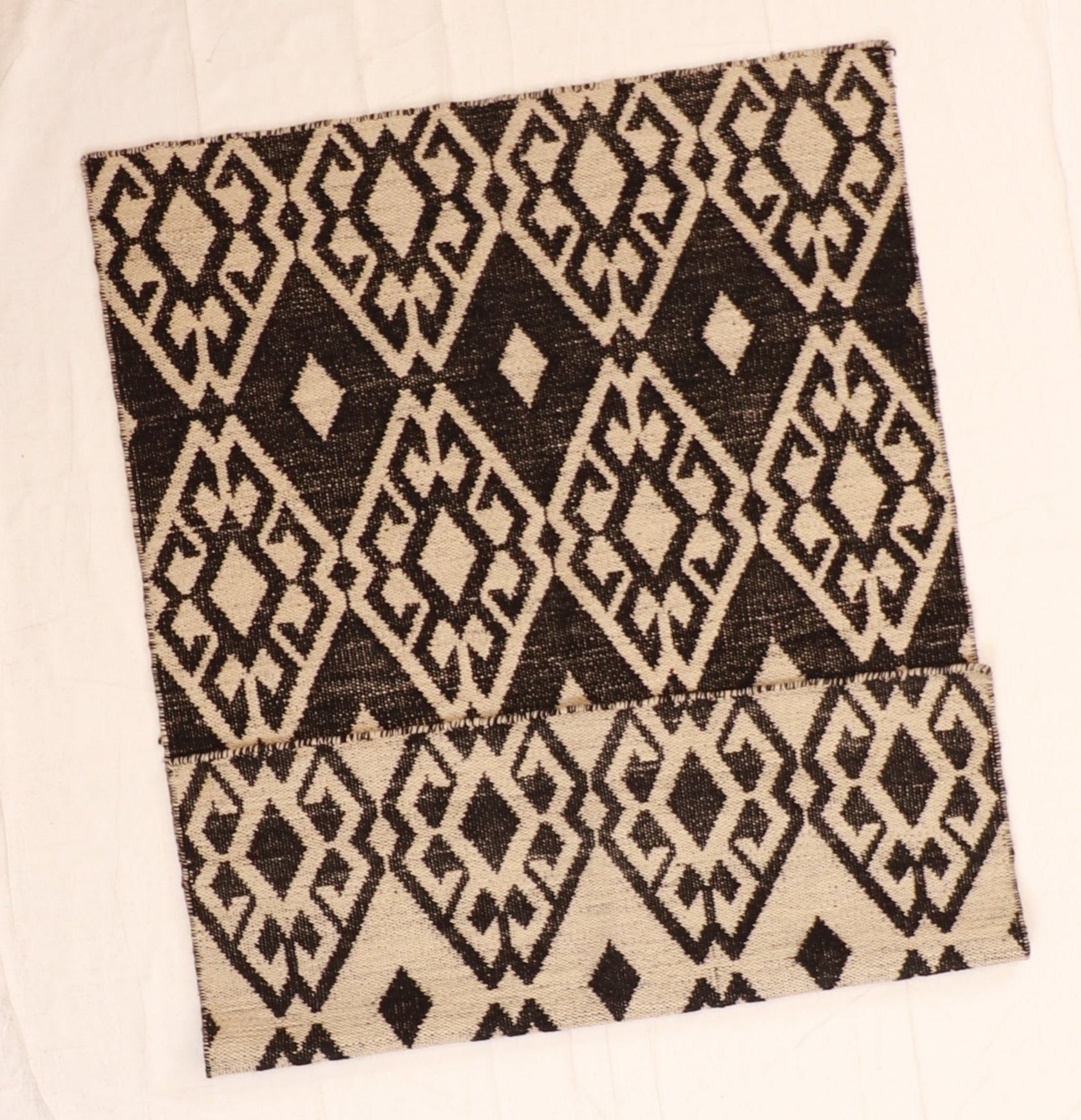 Introducing the exquisite Kilim Geometric Rug from Pakistan. This stunning rug boasts a vibrant color palette, featuring shades of Brown, Beige, which beautifully complement its geometric design. Made from fine wool materials, it showcases a pile texture that adds to its timeless appeal. Whether adorned in a living room, bedroom, or any space you desire, this Kilim Rug is sure to enhance the style and elegance of any interior decor.