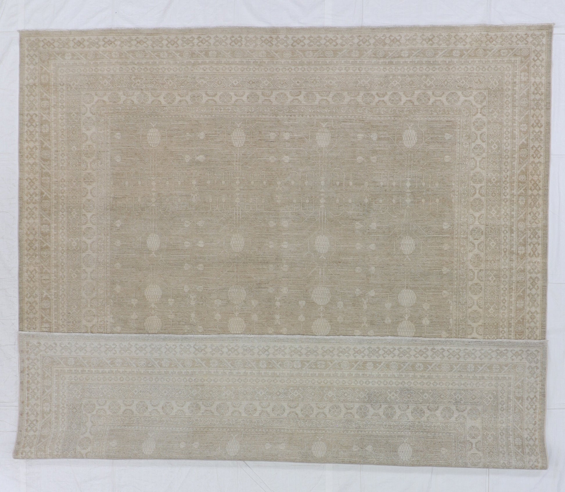 Introduce elegance and style to your space with this stunning Malayer rug from Pakistan. With its all-over design and vibrant color scheme of Beige, Cream, this rug is sure to catch the eye and complement any decor. It features a rectangular shape and a generous size of 10.6x11.1 feet, offering plenty of coverage for your living room or dining area. The rug is crafted with care from fine wool materials, ensuring durability and longevity. With a thickness of 1/4 inch, this rug is both comfortable and easy to maintain. Add a touch of sophistication to your home with this exquisite Malayer rug.