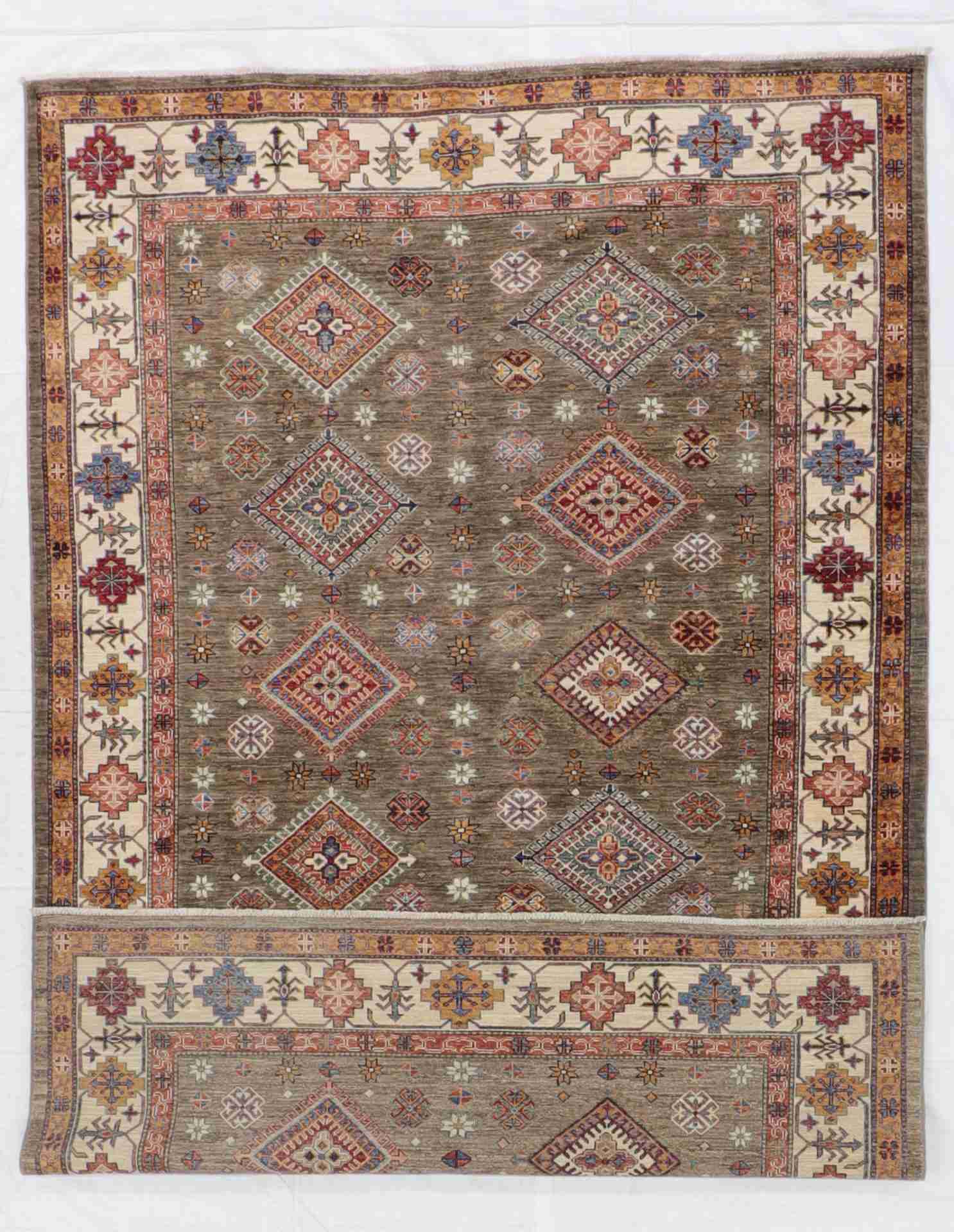 This Karageh is hand-knotted in 100% wool, composed in a refined artisanal vocabulary that reads confident and collected.