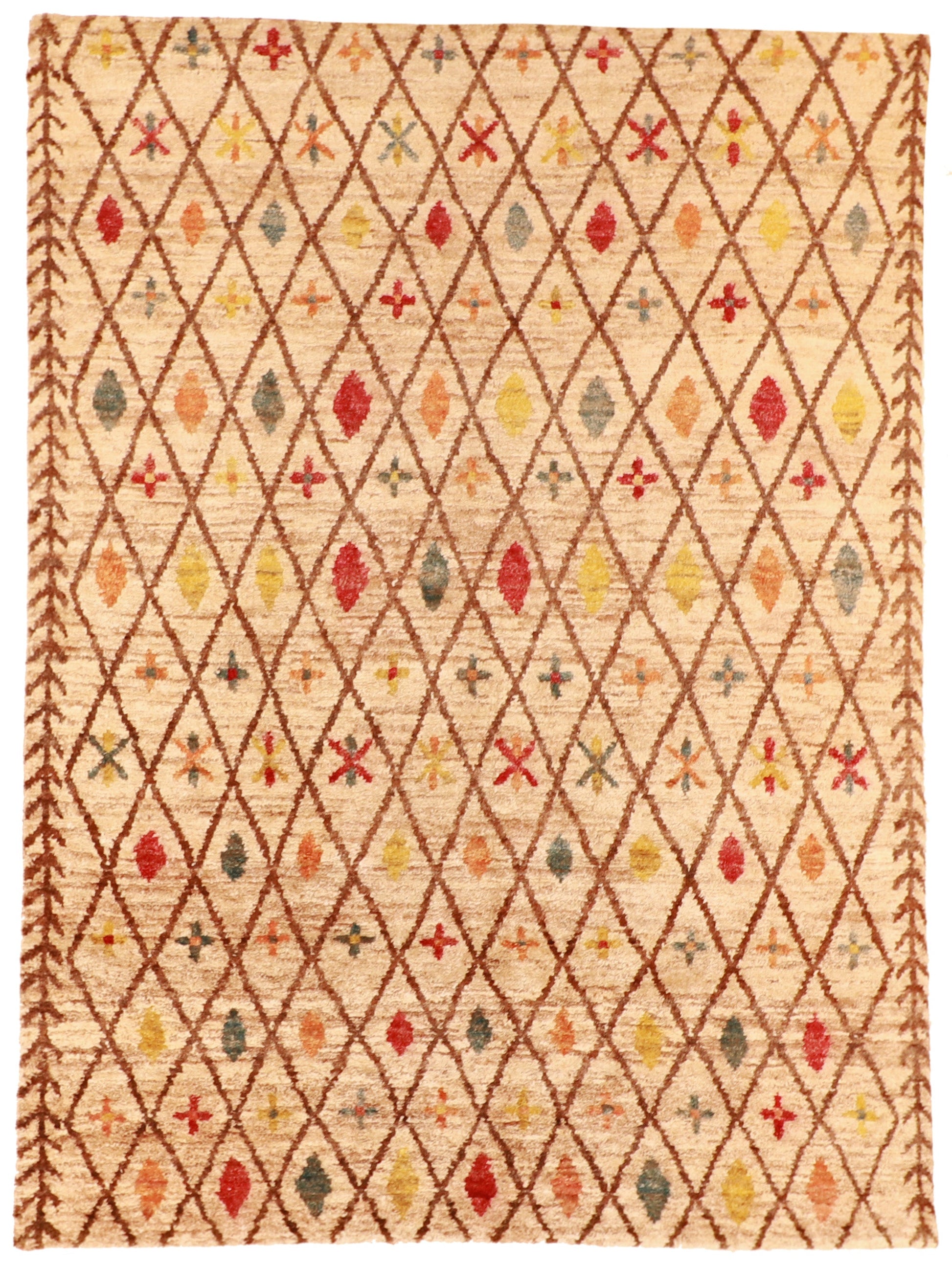 Introducing our mountain modern-style rug, designed with an all-over pattern in elegant colors including brown, red, green, and tan. Expertly crafted in India, this rectangular rug is made from fine materials, ensuring both durability and style. With dimensions of 8x11 feet and a thickness of 3/8 inches, it is the perfect size to complement any room. The rug features a pile construction, adding texture to your floors while maintaining a sleek appearance. Enhance your home with this exquisite rug that covers a generous space, bringing warmth and sophistication to any space.