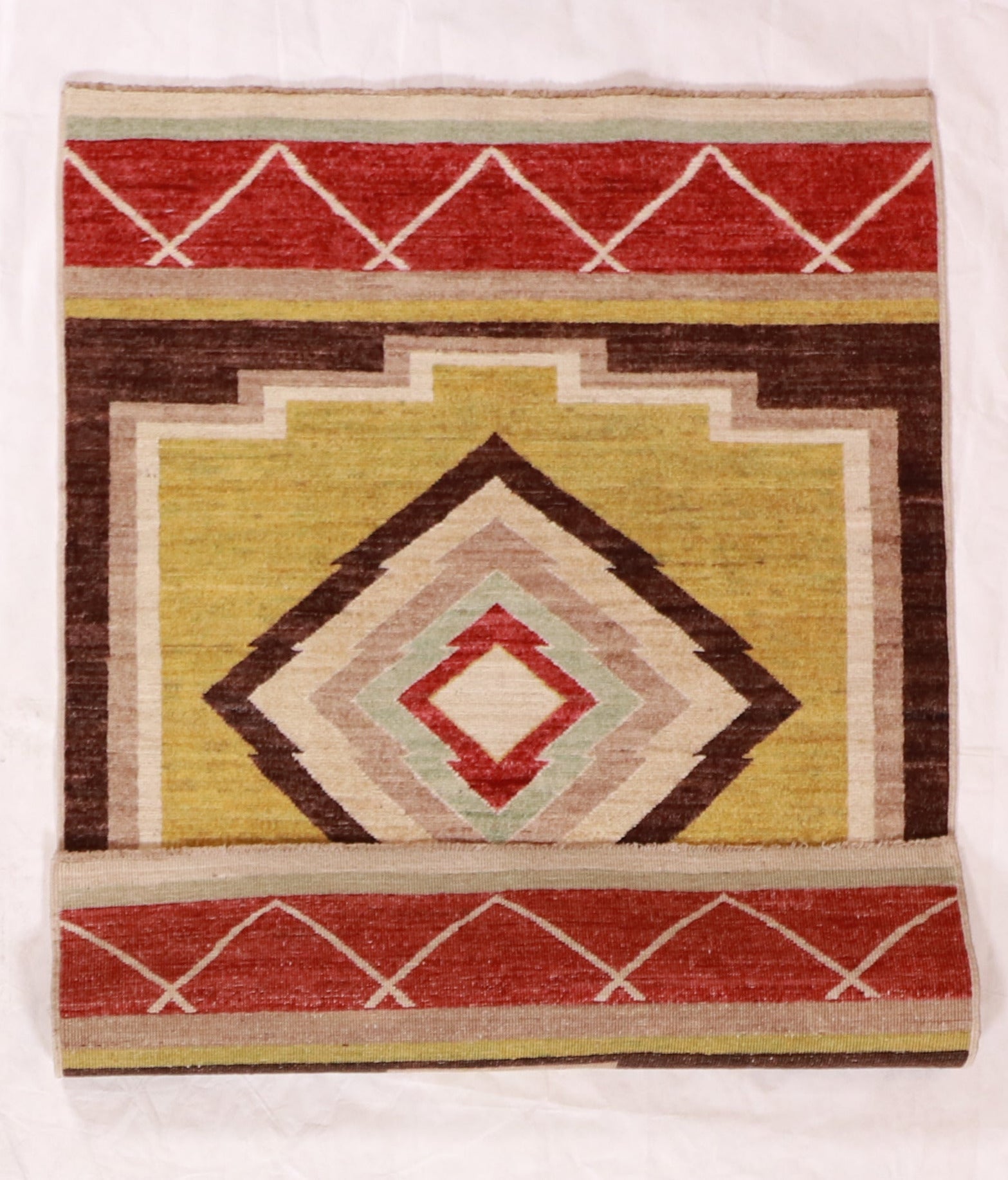 Introducing a stunning rug ideal for those seeking a touch of elegance and modernity in their space. This rectangular rug, originating from Pakistan, boasts a mountain modern style with an eye-catching all-over design. Available in striking colors including Red, Yellow, Brown, Grey, White, this rug adds warmth and vibrancy to any room. Made from fine wool material, it offers a plush and comfortable experience underfoot. With a size of 3.6x5, a thickness of 5/8 inches, this rug is perfect for larger spaces. Experience luxury and sophistication with this exquisite pile rug.