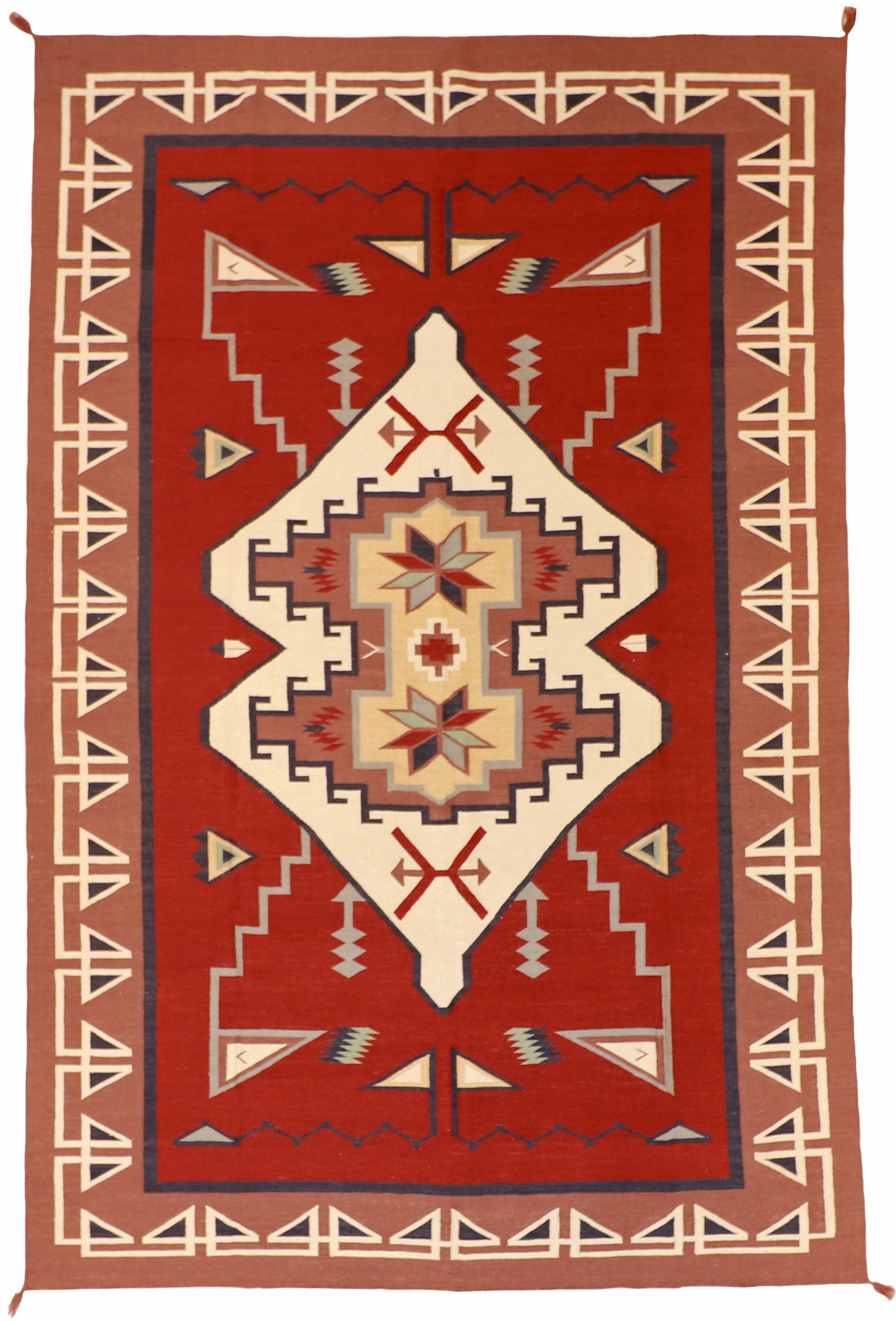 Introducing the exquisite Navajo Geometric Rug from Pak/Persia. This stunning rug boasts a vibrant color palette, featuring shades of Brown, Red, Blue, White, which beautifully complement its geometric design. Made from fine/wool materials, it showcases a flatweave texture that adds to its timeless appeal. Whether adorned in a living room, bedroom, or any space you desire, this Navajo Geometric Rug is sure to enhance the style and elegance of any interior decor.