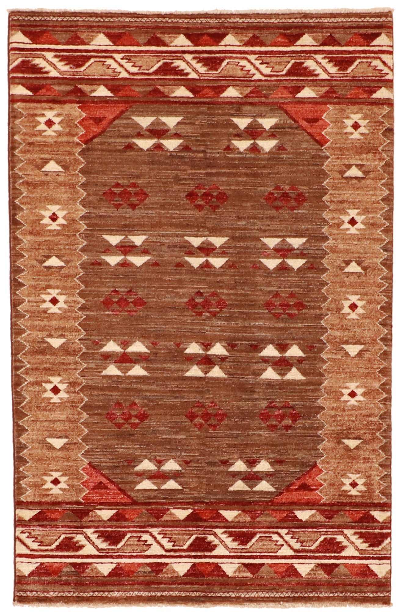 Introducing a stunning rug ideal for those seeking a touch of elegance and modernity in their space. This rectangular rug, originating from Pakistan, boasts a mountain modern style with an eye-catching all-over design. Available in striking colors including Rust, White, Grey, this rug adds warmth and vibrancy to any room. Made from fine wool material, it offers a plush and comfortable experience underfoot. With a size of 3.1x4.10, a thickness of 5/8 inches, this rug is perfect for larger spaces. Experience luxury and sophistication with this exquisite pile rug.
