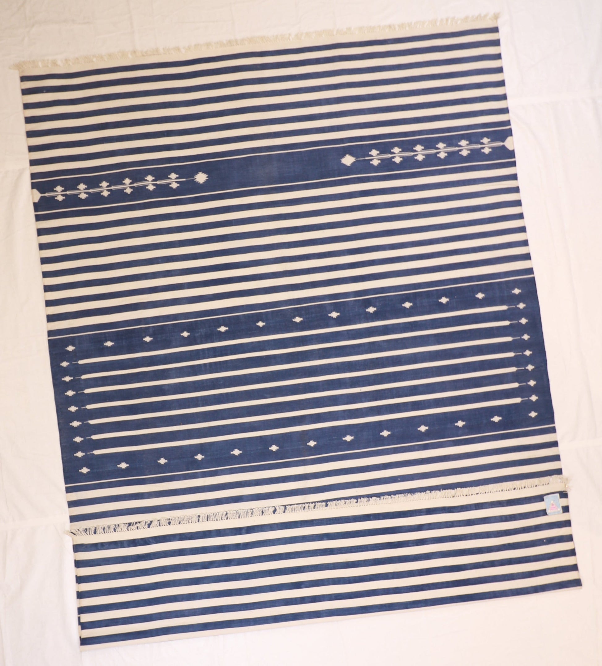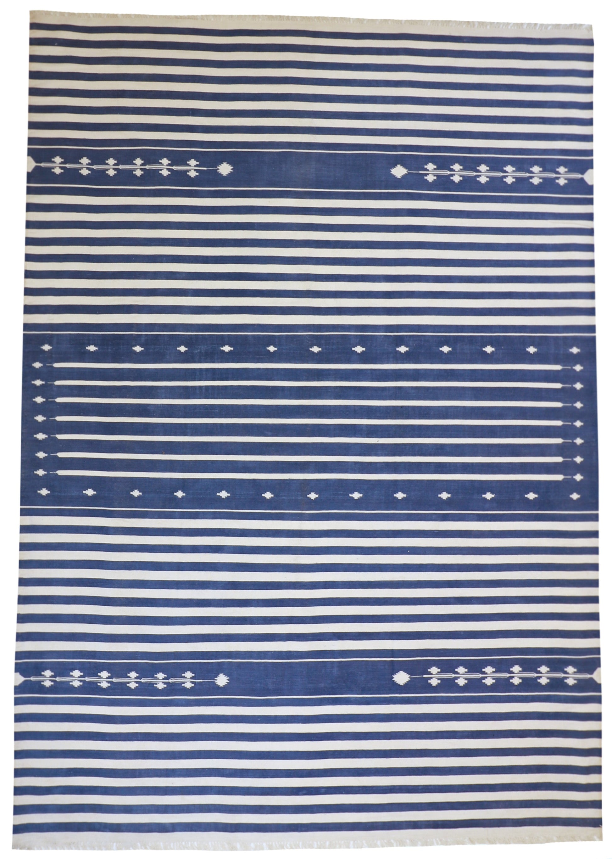 Introducing our stunning Kilim rug from India. This eye-catching rug features an all-over design in a range of vibrant colors including Blue, White. Crafted with care, this fine material rug is perfect for adding warmth and style to any room. The rectangular shape and dimensions of 9.8' width and 14' length make it an ideal fit for various spaces. With a thickness of 1/4", this flatweave rug is both durable and comfortable underfoot. Its generous size ensures ample coverage. Bring a touch of elegance and cultural charm to your home with this exquisite Kilim rug.