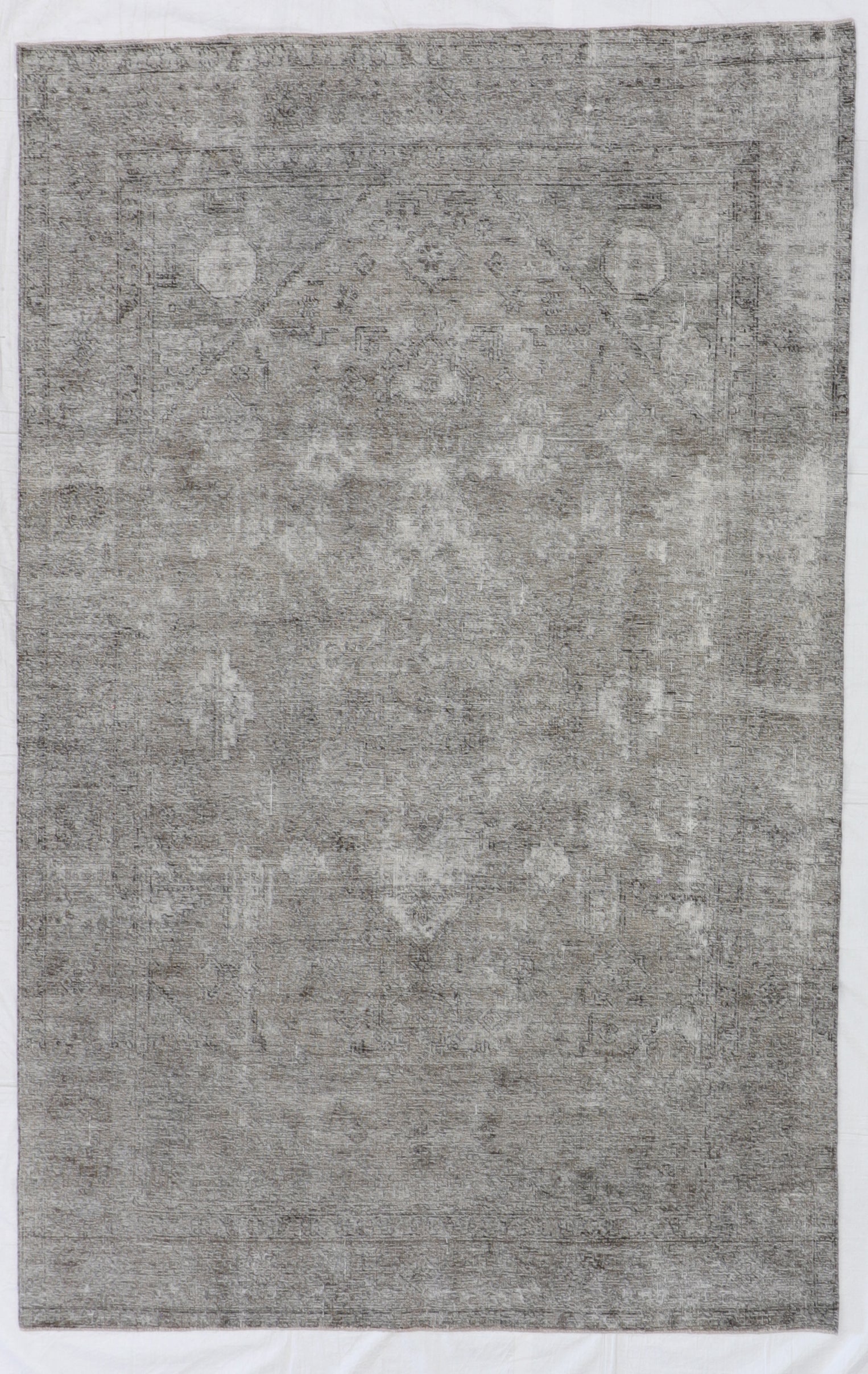 Introducing our vintage Persian wool rug, a timeless addition to any home decor. This 6.3x9.9 rectangle rug features an elegant all-over design in shades of grey, and brown, adding a touch of sophistication to your living space. With a thickness of 1/8 inch, it provides a comfortable and cozy feel underfoot. Handcrafted in Persia, this rug showcases the rich craftsmanship and heritage of the region. The pile construction ensures durability and longevity, making it perfect for high-traffic areas. It effortlessly fills your room with warmth and elegance.