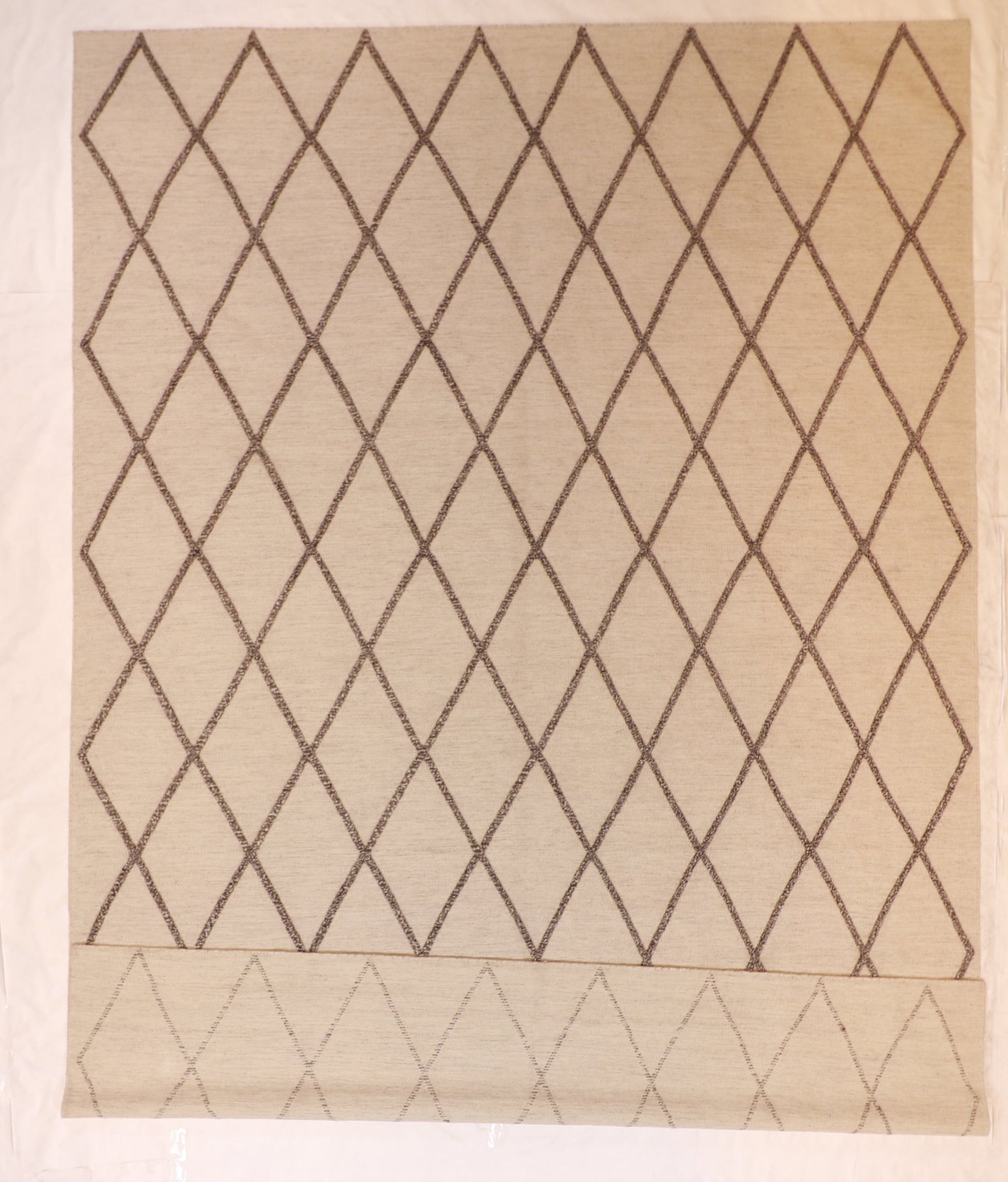 Introducing this modern Beige, Grey rug from India, boasting a sleek all-over design. It is the perfect addition to any contemporary space. With a thickness of 1/4 inch, it offers a comfortable and durable surface. Whether placed in a living room, bedroom, or office, this flatweave base with highlights of pile rug adds a touch of sophistication and style to any setting. Its versatile design and high-quality construction make it a practical and fashionable choice for any home decor.