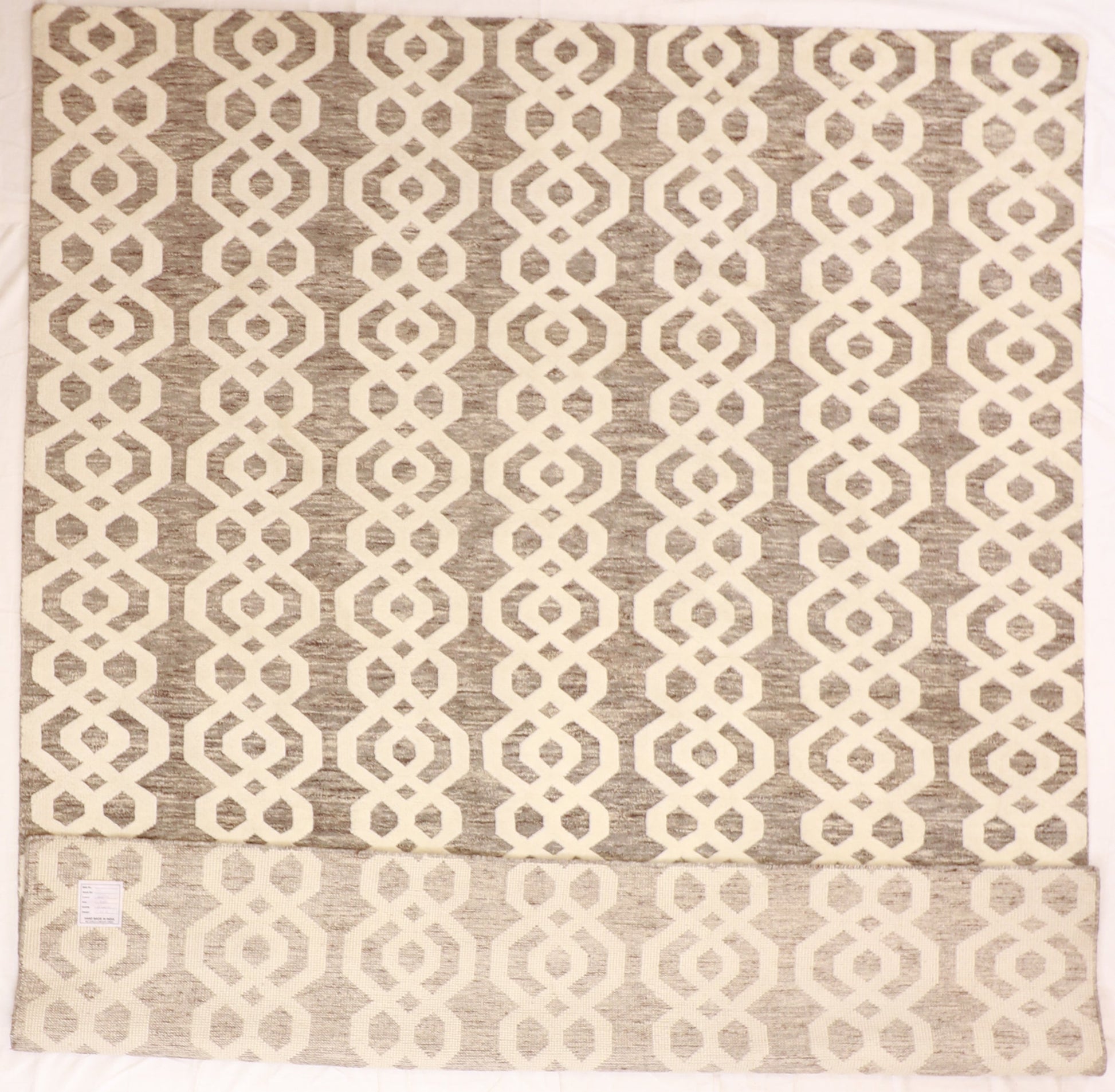 Introducing our exquisite Moroccan-style rug, showcasing an all-over design that adds elegance to any space. Available in two sophisticated colors, grey and white, this rectangle-shaped rug is sure to complement your decor perfectly. Crafted with care in India, this rug is made of fine wool material, ensuring both durability and comfort. With a thickness of 3/8 inch, it provides a plush feel underfoot. Measuring 9 x 12 feet, it covers an impressive area. Whether placed in a living room, bedroom, or office, this pile rug will effortlessly enhance the aesthetic of your home.