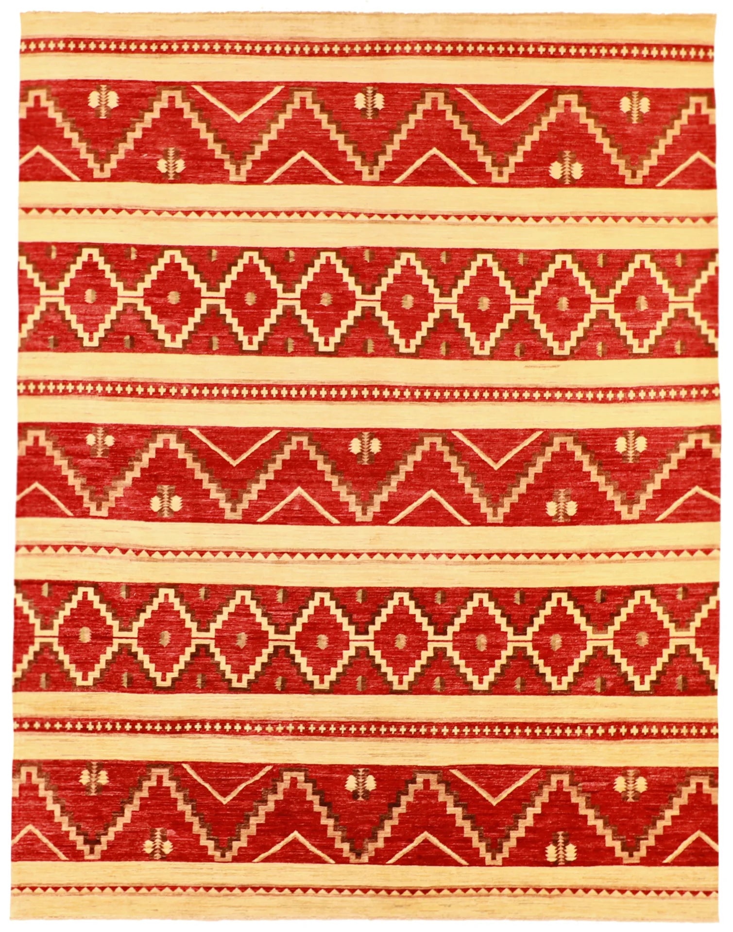Introducing a stunning rug ideal for those seeking a touch of elegance and modernity in their space. This rectangular rug, originating from Pakistan, boasts a mountain modern style with an eye-catching all-over design. Available in striking colors including red, orange, and tan, this rug adds warmth and vibrancy to any room. Made from fine wool material, it offers a plush and comfortable experience underfoot. With a size of 9 x 12, a thickness of 5/8 inches, this rug is perfect for larger spaces. Experience luxury and sophistication with this exquisite pile rug.