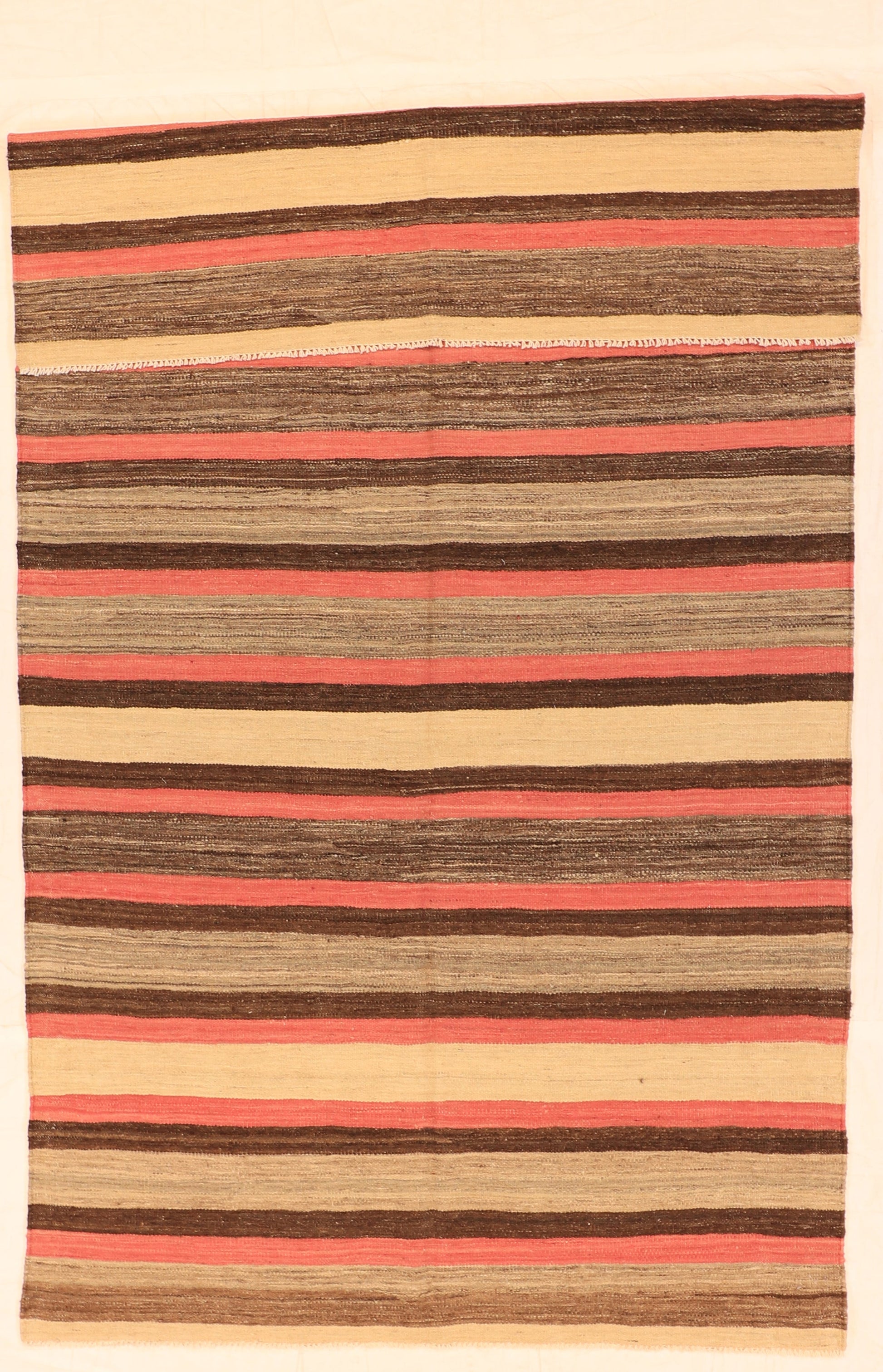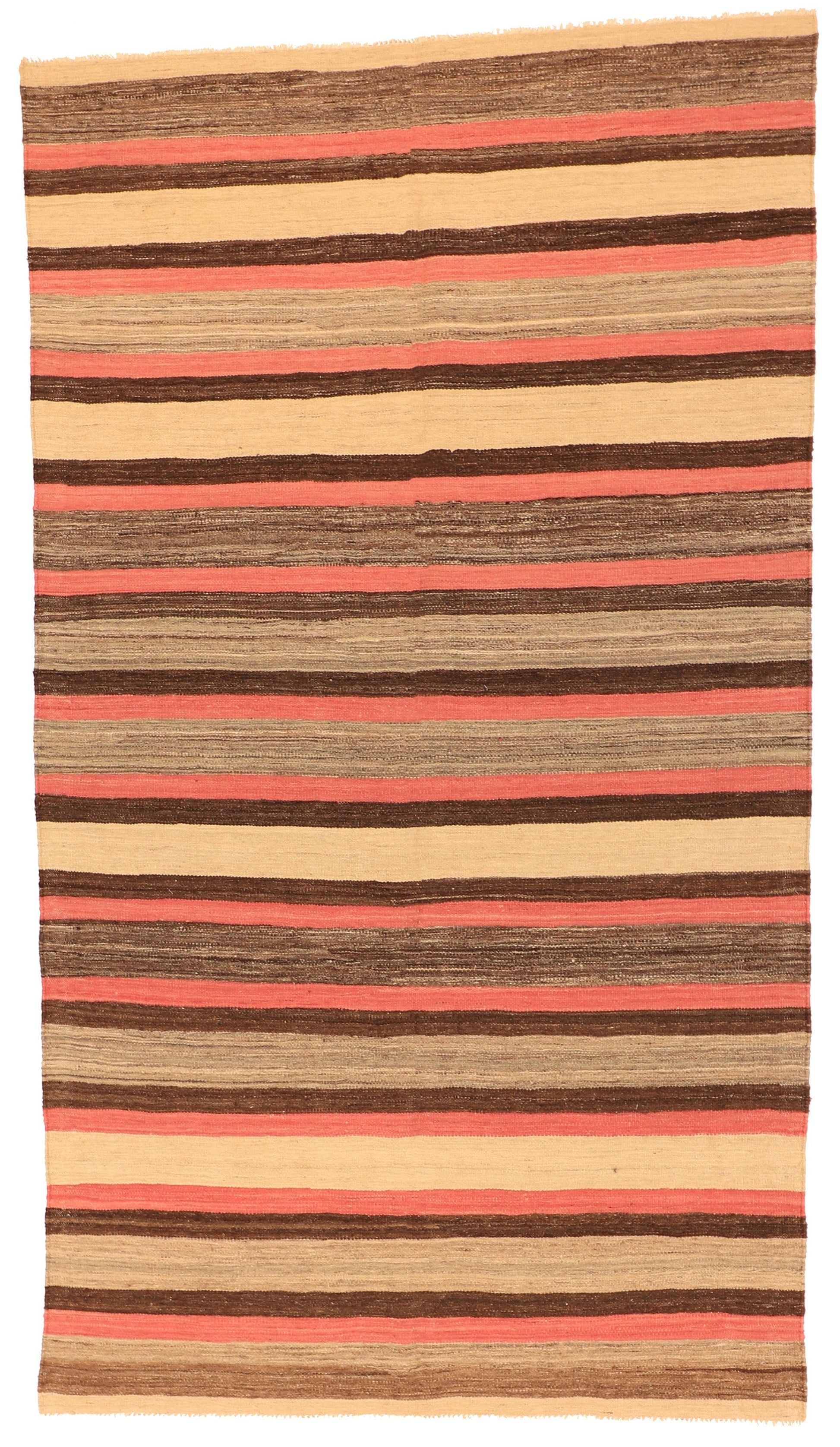 This exquisite 5.5x9.6 Kilim rug from Pakistan boasts a vibrant color palette, featuring shades of Rust, Tan, Brown, Grey. Crafted with fine/wool, this rug showcases a traditional Kilim design that adds a touch of elegance and a timeless charm to any space. With a thickness of 3/8 inch, this rectangular rug offers durability and comfort underfoot. Its size covers an impressive area, making it suitable for larger rooms. The Flatweave construction further enhances its durability, making it a perfect addition for high-traffic areas. Embrace the beauty and craftsmanship of this Kilim rug in your home.