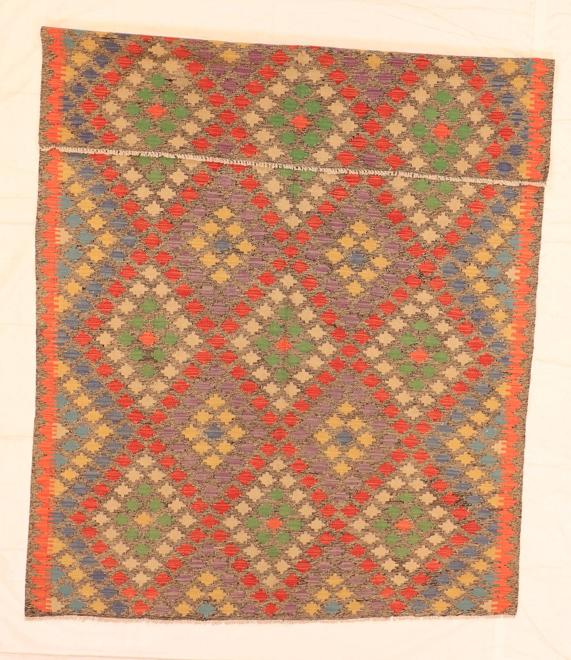 This exquisite 5.6x7.9 Kilim rug from Pakistan boasts a vibrant color palette, featuring shades of Brown, Beige, Green, Orange, Red, Yellow. Crafted with Fine/Wool, this rug showcases a traditional Kilim design that adds a touch of elegance and a timeless charm to any space. With a thickness of 3/8 inch, this rectangular rug offers durability and comfort underfoot. Its size covers an impressive area, making it suitable for larger rooms. The Flatweave construction further enhances its durability, making it a perfect addition for high-traffic areas. Embrace the beauty and craftsmanship of this Kilim rug in your home.