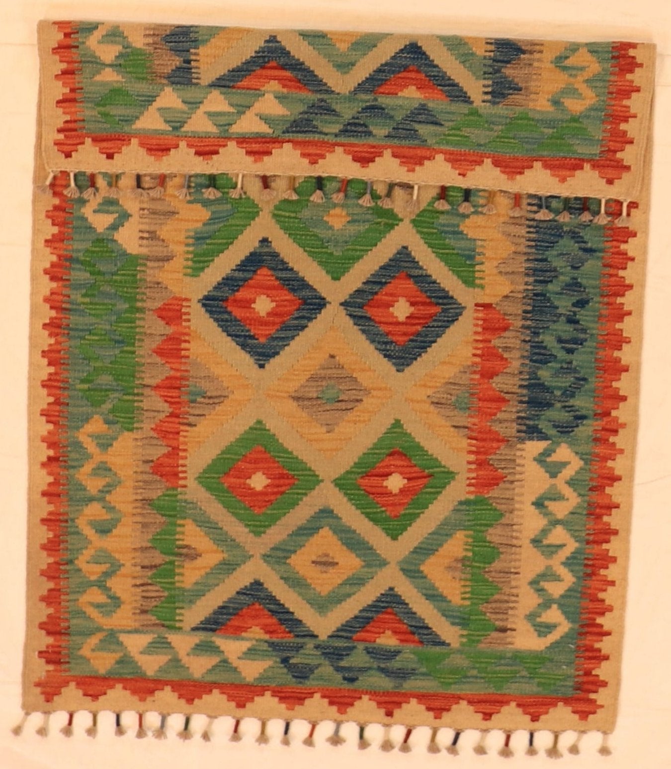 This exquisite 3.5x4.10 Kilim rug from Pakistan boasts a vibrant color palette, featuring shades of Green, Tan, Brown, Red, Blue. Crafted with fine/wool, this rug showcases a traditional Kilim design that adds a touch of elegance and a timeless charm to any space. With a thickness of 3/8 inch, this rectangular rug offers durability and comfort underfoot. Its size covers an impressive area, making it suitable for larger rooms. The Flatweave construction further enhances its durability, making it a perfect addition for high-traffic areas. Embrace the beauty and craftsmanship of this Kilim rug in your home.