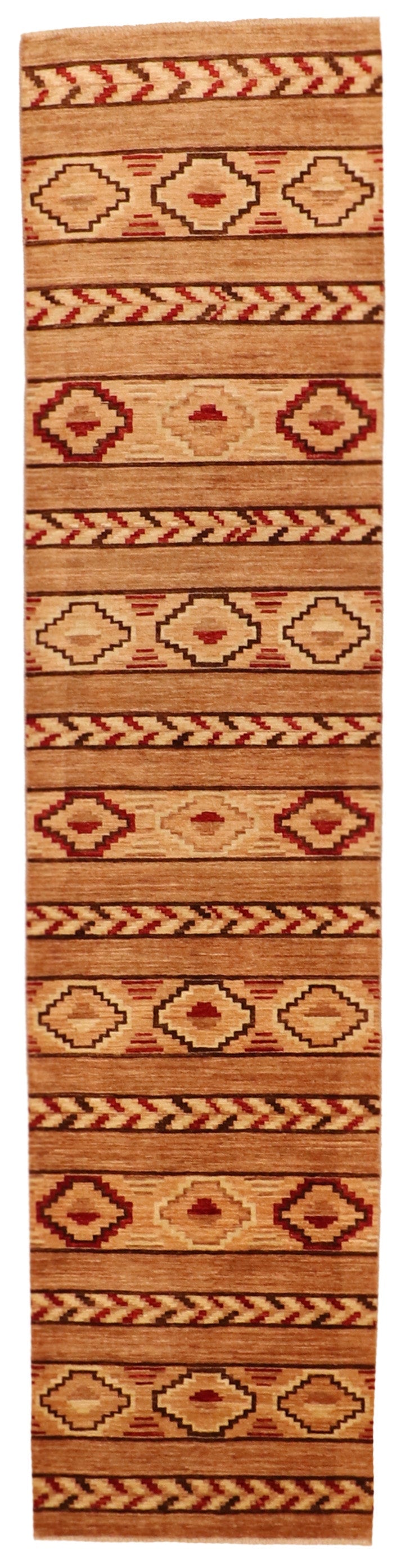 Introducing a stunning rug ideal for those seeking a touch of elegance and modernity in their space. This rectangular rug, originating from Pakistan, boasts a mountain modern style with an eye-catching all-over design. Available in striking colors including Maroon, Tan, Yellow, Black, this rug adds warmth and vibrancy to any room. Made from fine wool material, it offers a plush and comfortable experience underfoot. With a size of 2.8x11.5, a thickness of 5/8 inches, this rug is perfect for larger spaces. Experience luxury and sophistication with this exquisite pile rug.