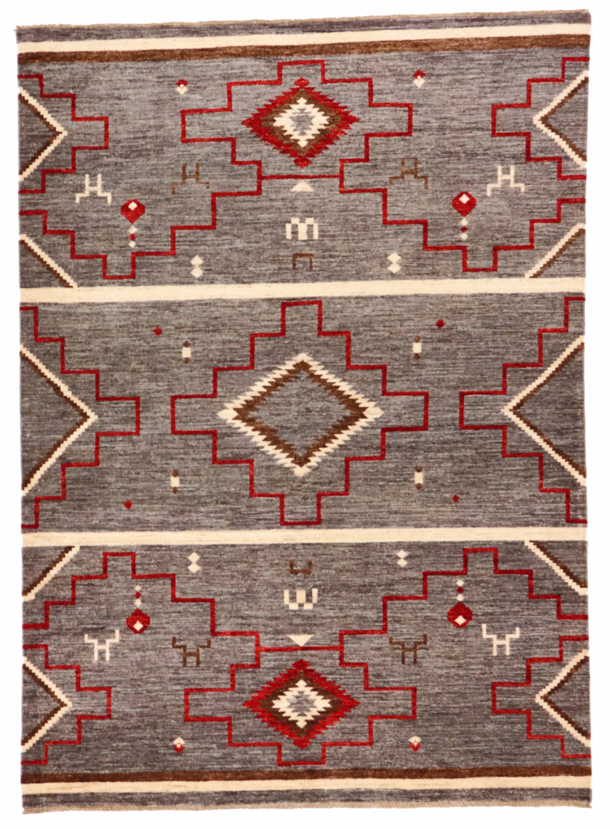Introducing a stunning rug ideal for those seeking a touch of elegance and modernity in their space. This rectangular rug, originating from Pakistan, boasts a mountain modern style with an eye-catching all-over design. Available in striking colors including Grey, Maroon, White, Brown, this rug adds warmth and vibrancy to any room. Made from fine wool material, it offers a plush and comfortable experience underfoot. With a size of 5.1x7.1, a thickness of 5/8 inches, this rug is perfect for larger spaces. Experience luxury and sophistication with this exquisite pile rug.