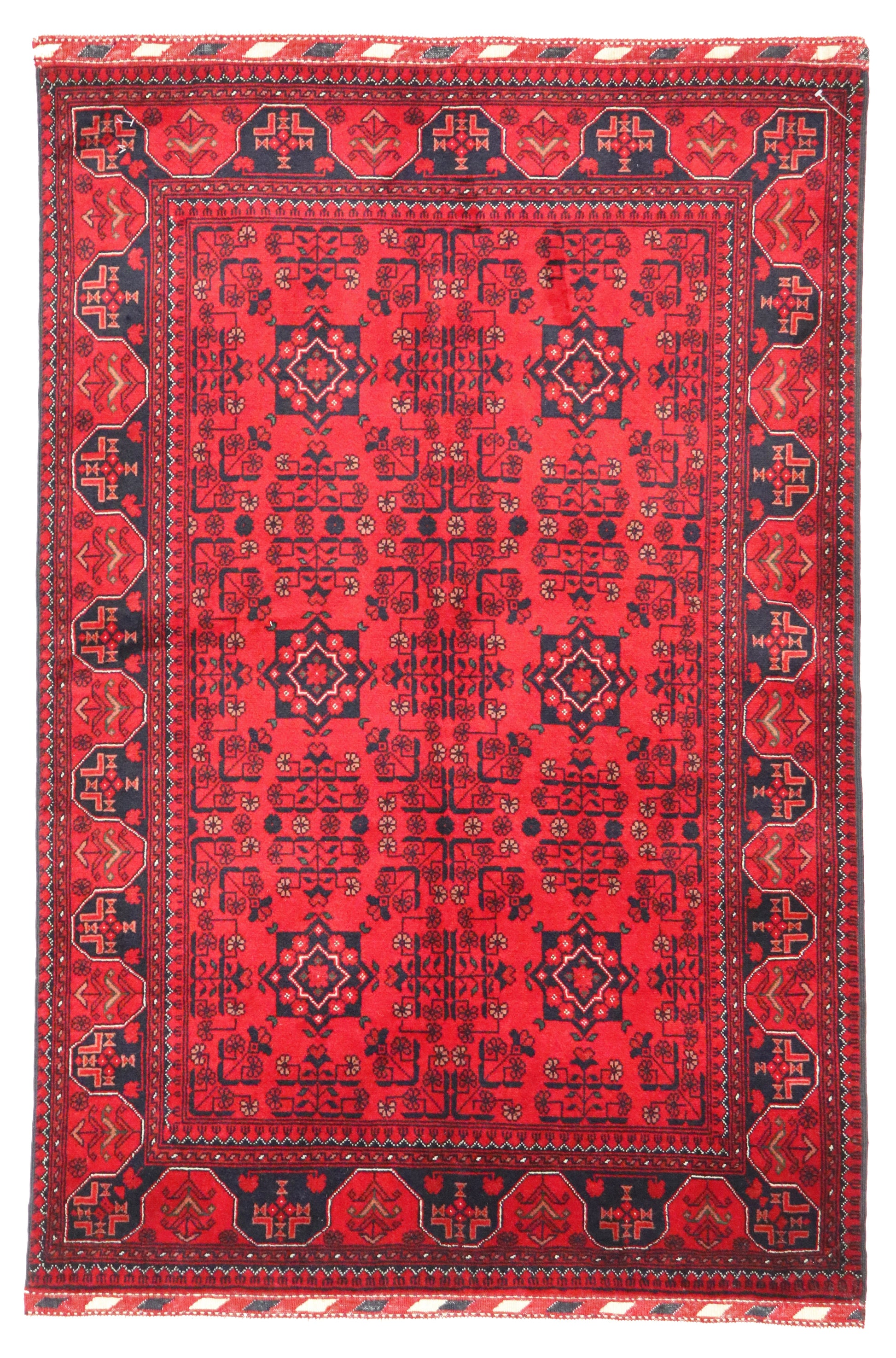 Introducing our exquisite Turkaman rug from Afghanistan, boasting a stunning all-over design in vibrant shades of Rose, Black, White. This rectangular masterpiece measures 3.6x4.10 feet, with a thickness of 1/4 inch, offering a luxurious and comfortable feel underfoot. Crafted from high-quality wool, this rug is not only visually captivating but also durable and long-lasting. With a width of 3.6 feet and a length of 4.10 feet, it covers an impressive area, making it suitable for various spaces. Elevate your home's decor with this remarkable pile rug, showcasing the rich cultural heritage of Afghanistan.