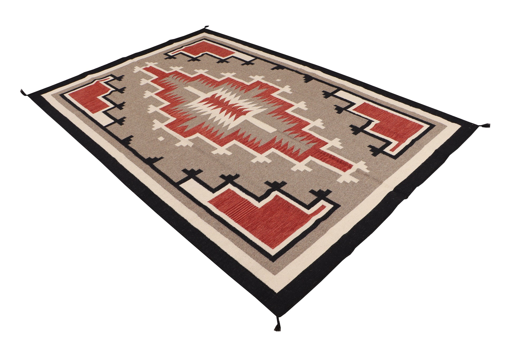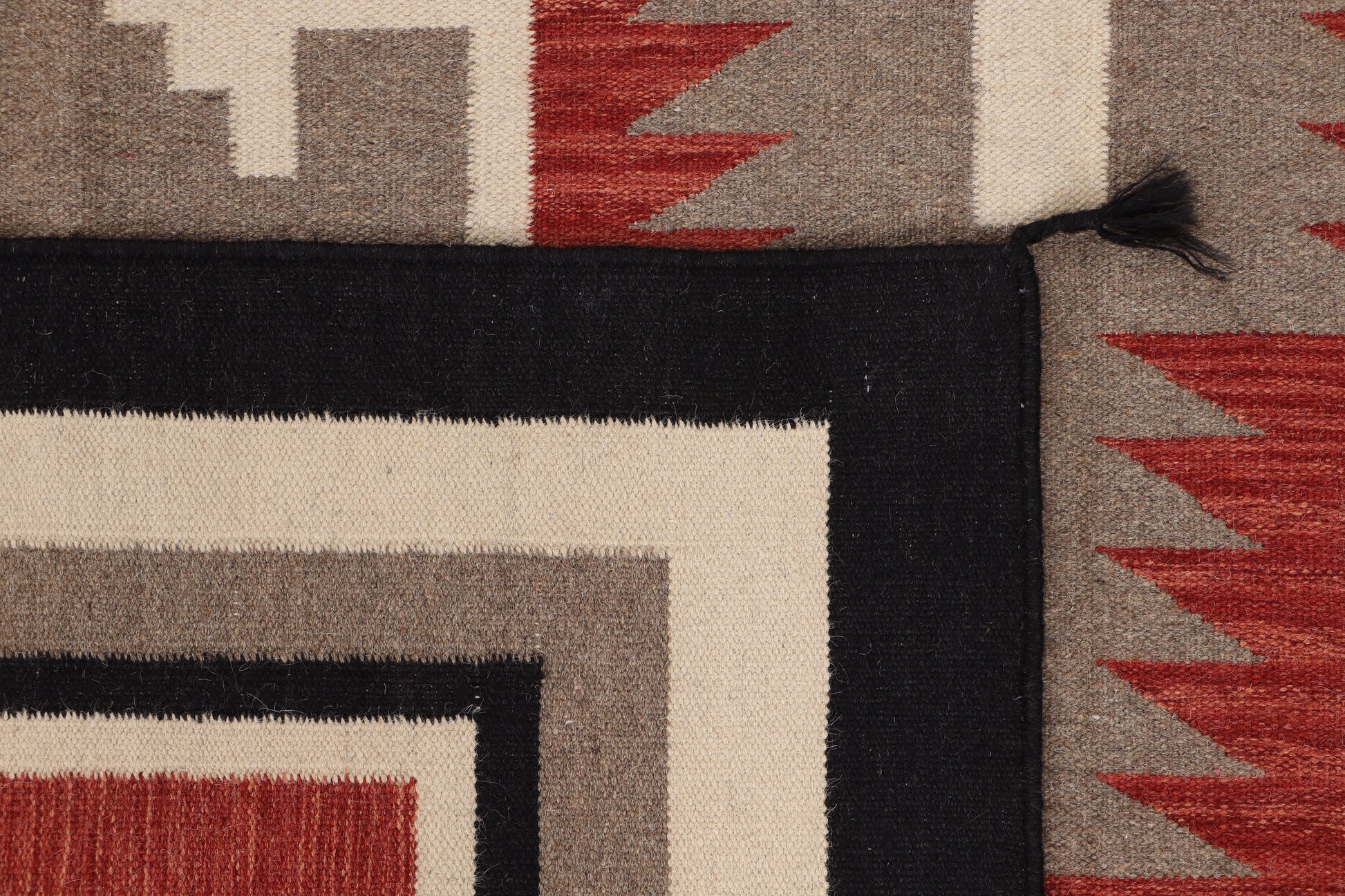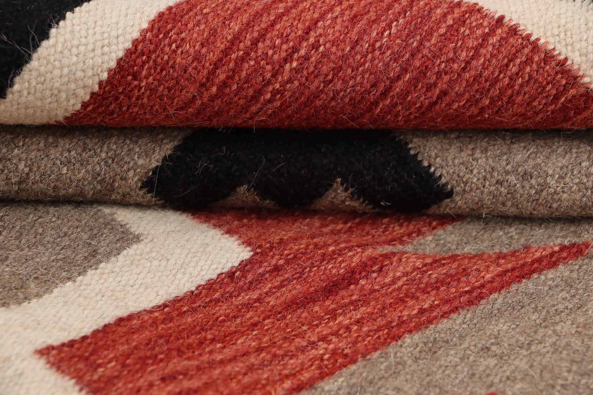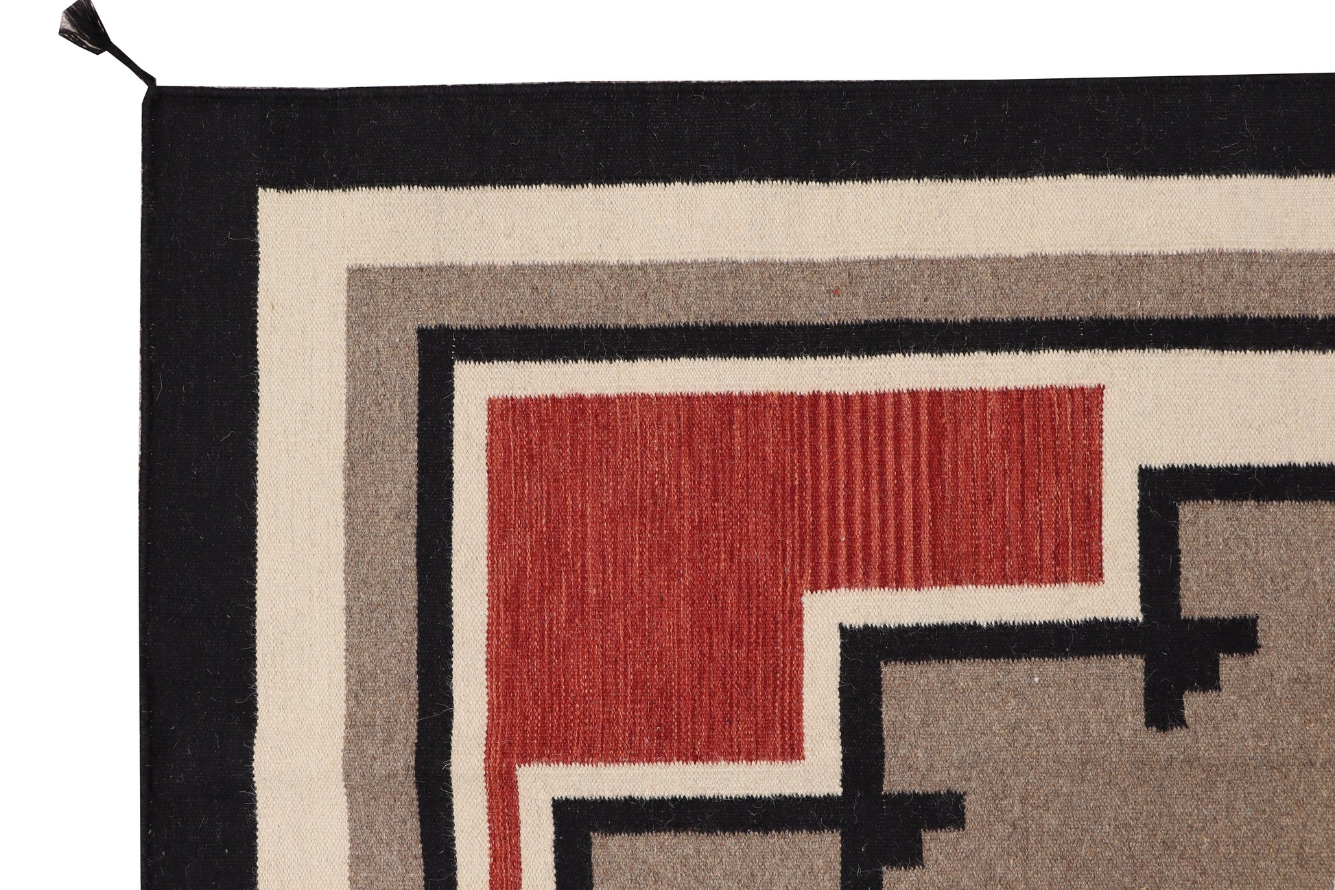 This exquisite 5.11x9 Kilim rug from Pakistan boasts a vibrant color palette, featuring shades of Grey, Black, Red, Beige. Crafted with fine/wool, this rug showcases a traditional Kilim design that adds a touch of elegance and a timeless charm to any space. With a thickness of 3/8 inch, this rectangular rug offers durability and comfort underfoot. Its size covers an impressive area, making it suitable for larger rooms. The Flatweave construction further enhances its durability, making it a perfect addition for high-traffic areas. Embrace the beauty and craftsmanship of this Kilim rug in your home.