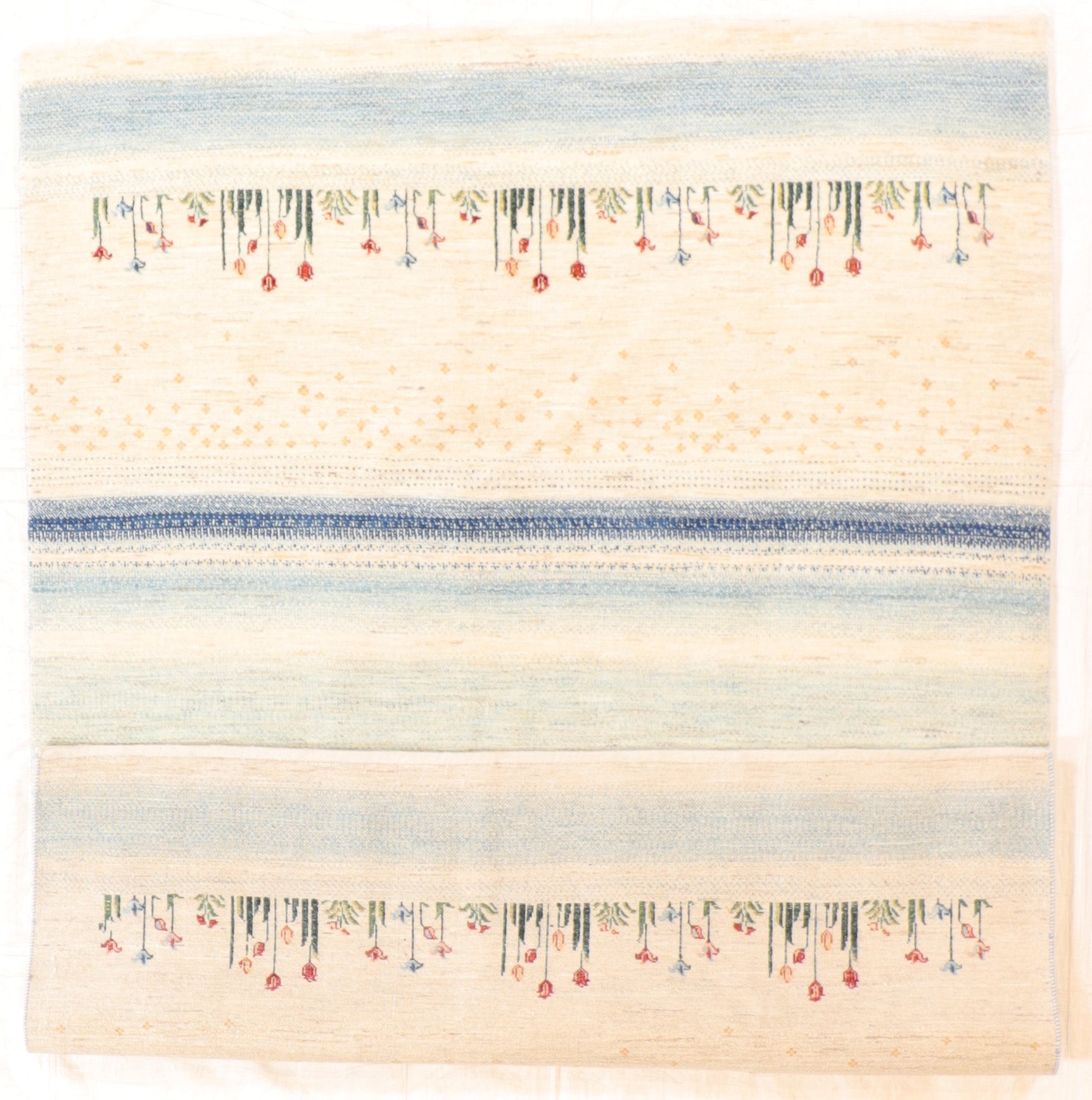Introduce an element of vibrant luxury to your living space with this exquisite Gabbeh rug. Its all-over design in Light Blue, Dark Blue, White, and Red colors adds a touch of elegance to any room. Crafted in Persia, this 5 x 6.8 sized rectangle rug boasts a thick pile, measuring 1/4 inch in thickness. With a width of 5 feet and a length of 6.8 feet, it covers a generous area of floor space. Made from fine wool materials, this rug strikes the perfect balance between comfort and durability. Enhance the aesthetic appeal of your home with this stunning and luxurious Gabbeh rug.