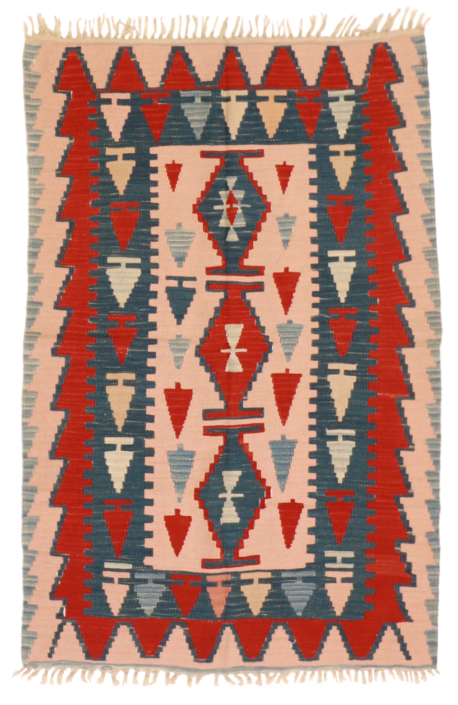 4x6 - Kilim Wool Geometric Rectangle - Hand Knotted Rug